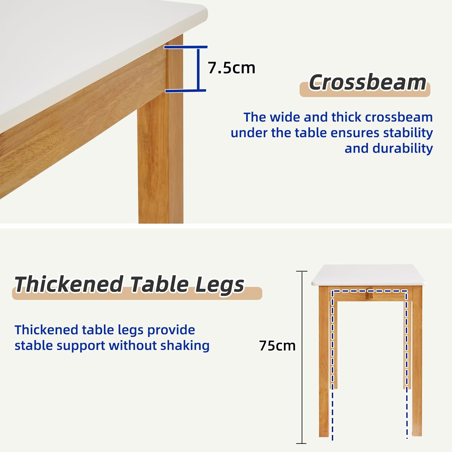 Small Computer Desk Table, Wood Writing Desk with Drawers and Hooks, 39x22x30inch Work Study Table, Wooden Dining Table White + Natural Wood Legs YD-WD02WN