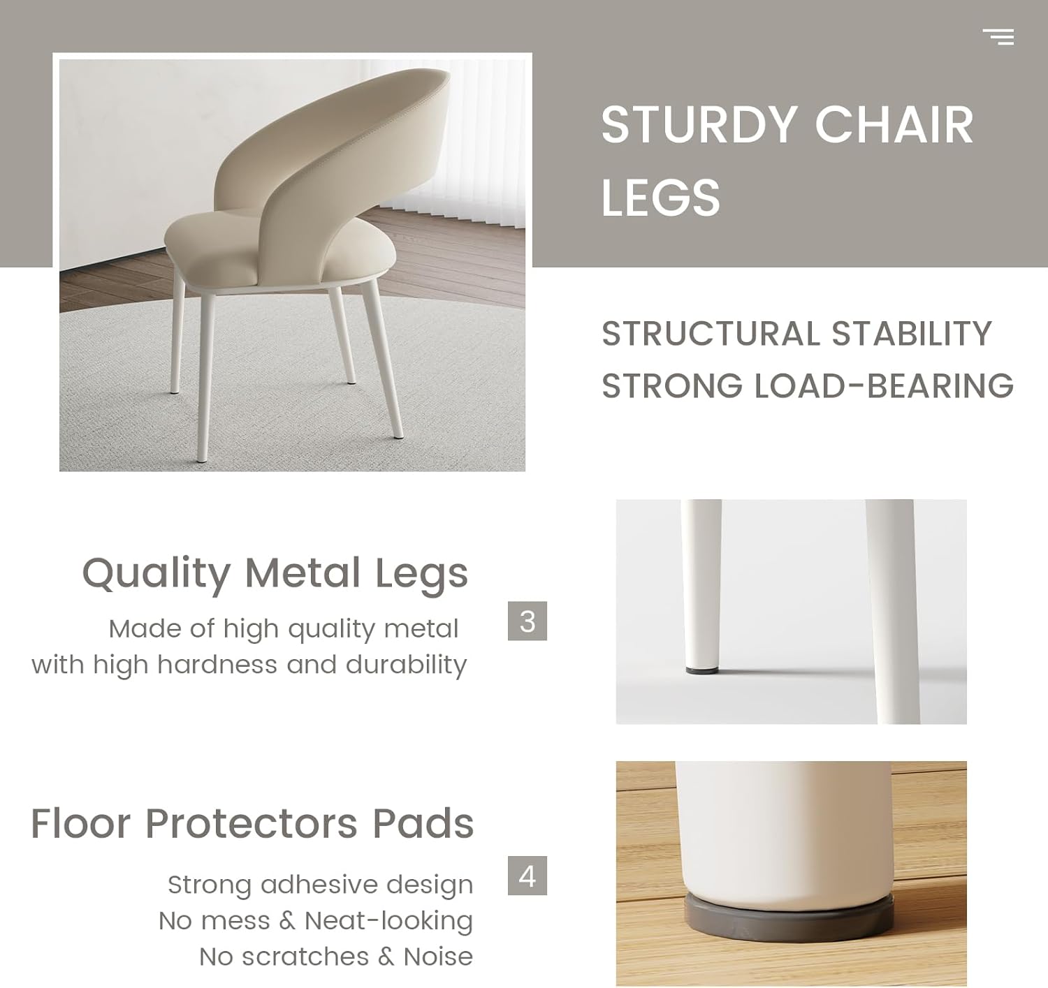 Sofa Chair Set of 2, Modern Desk Chairs, Kitchen Dining Chair with Metal Legs for Home Office, Bedroom & Living Room