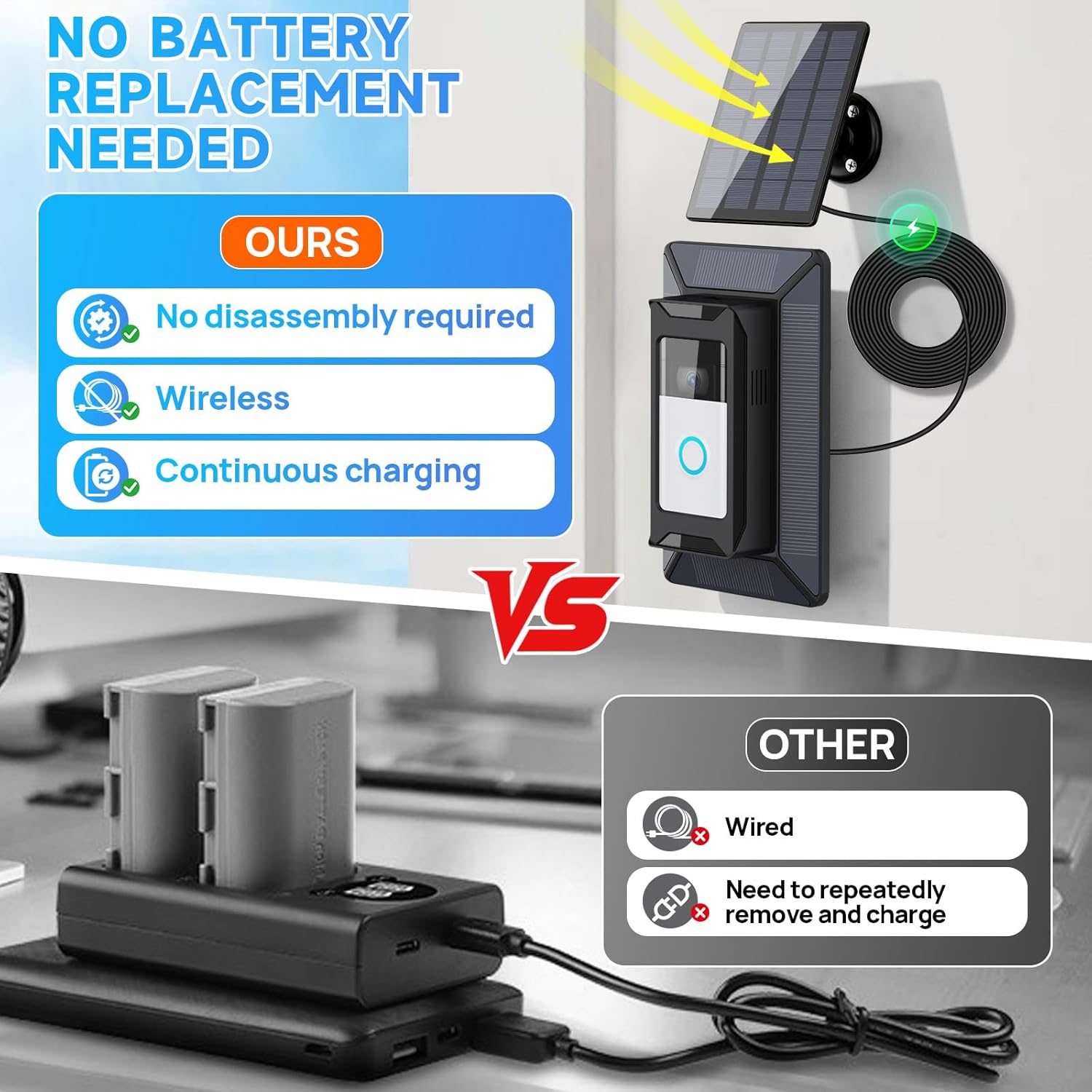 Solar Charger for Ring Doorbell, 2-in-1 with Mount Stand, Compatible with Ring Battery Doorbell 3/4/3 Plus, Ring Battery Doorbell Pro/Plus (2020/2021/2023)