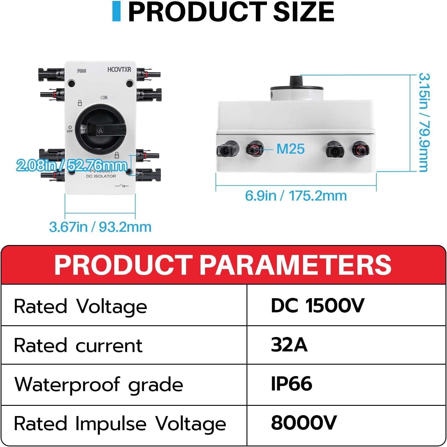 Solar Disconnect Switch 32Amp 1000VDC,4 Pole Solar Isolator Switch with IP66 Waterproof Enclosure,DC Disconnect Switch for Solar Panel