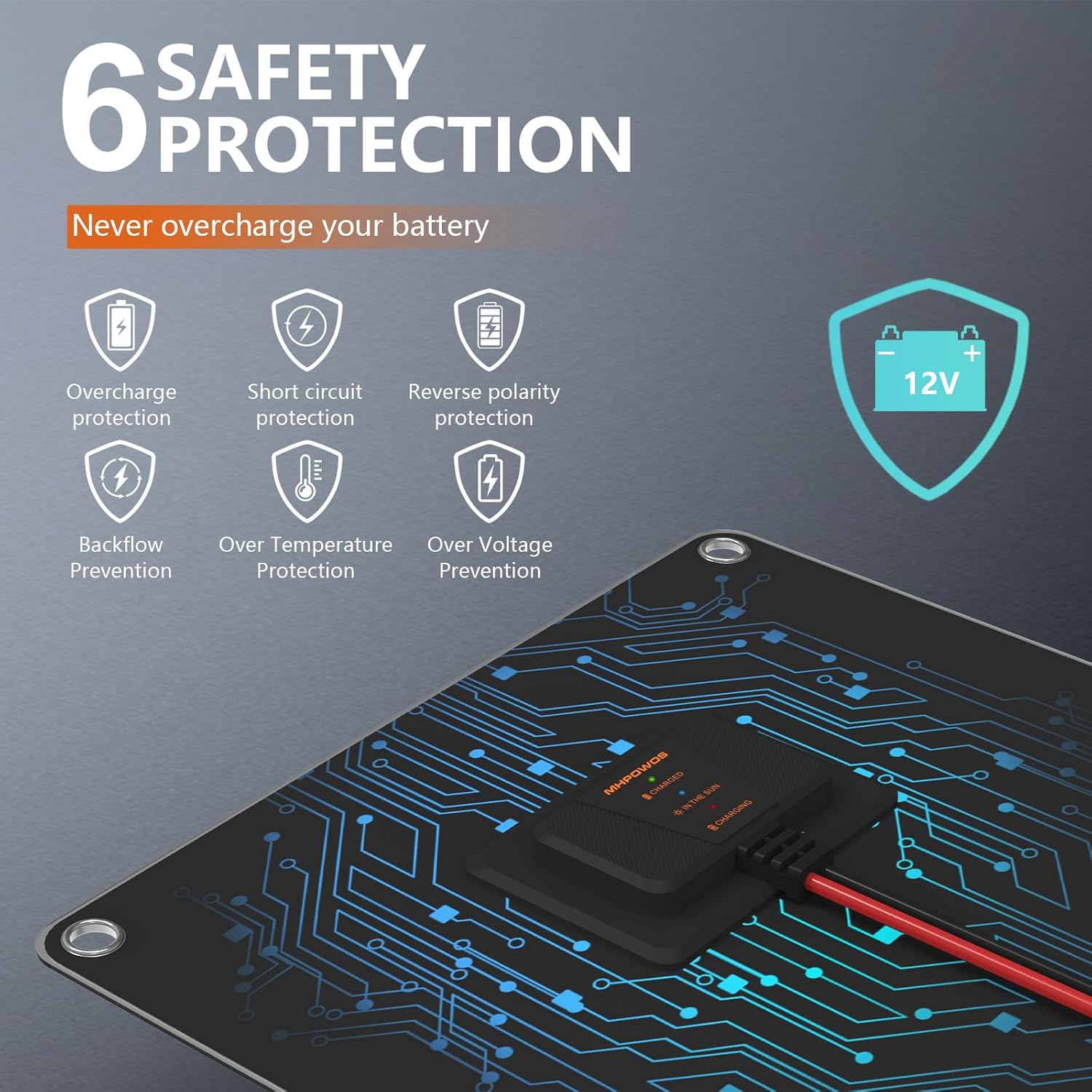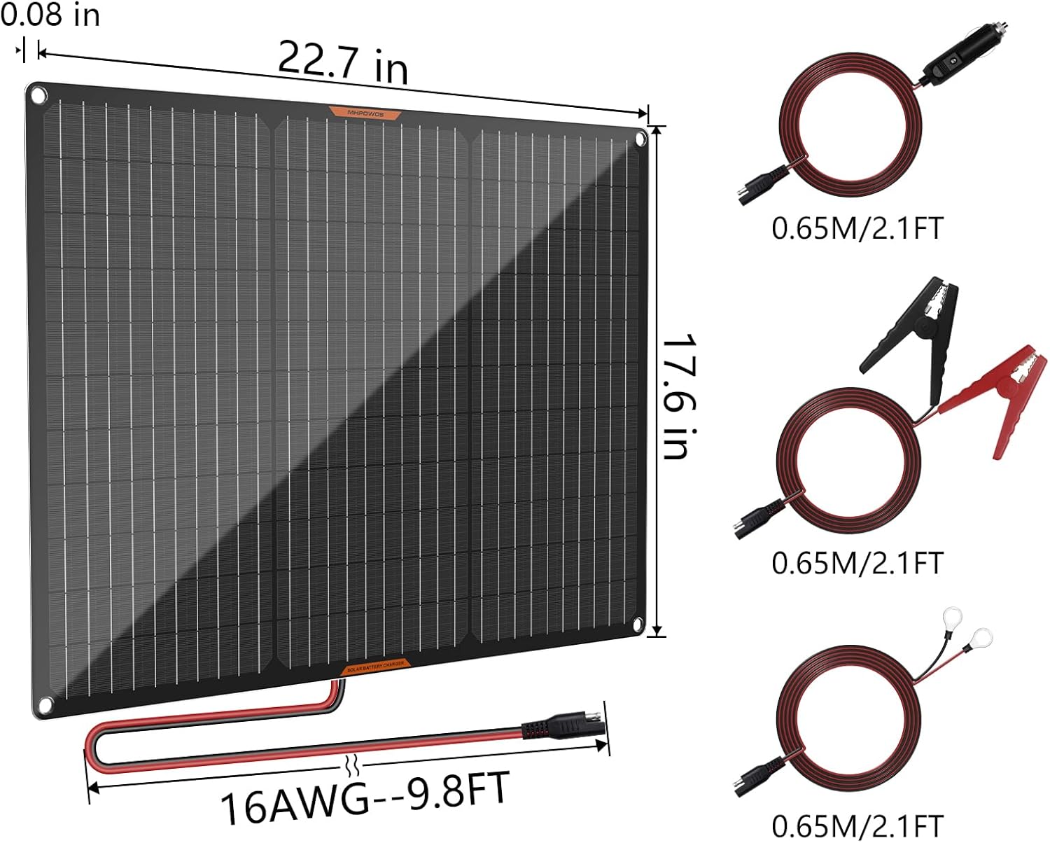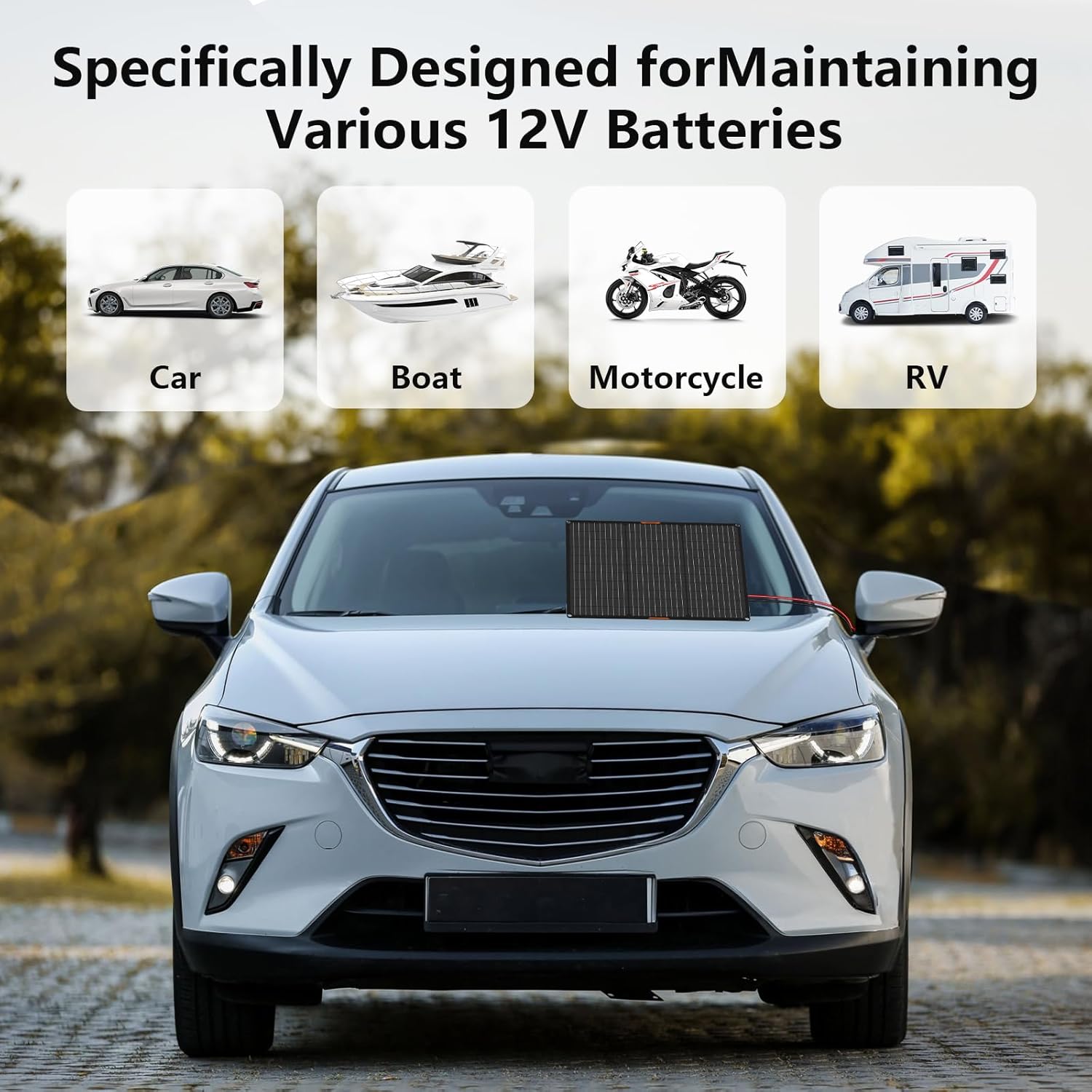 Solar Panel 50W 12V Solar Car Battery Charger Maintainer Portable Waterproof Power Solar Trickle Charger for Car Boat Automotive RV with Alligator Clip