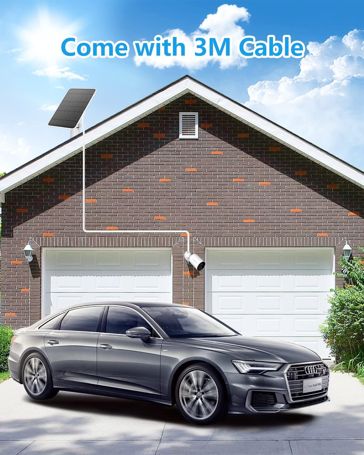 Solar Panel Charger Compatible with Eufycam 3/3C/2C/2C Pro/E40/E20/2/2 Pro/E/L20/L40/Solo/SoloCam Spotlight, 5W Solar Panel for Eufy Camera, Micro USB & USB-C Port, 9.8ft Cable, P65 Waterproof, 4 Pack