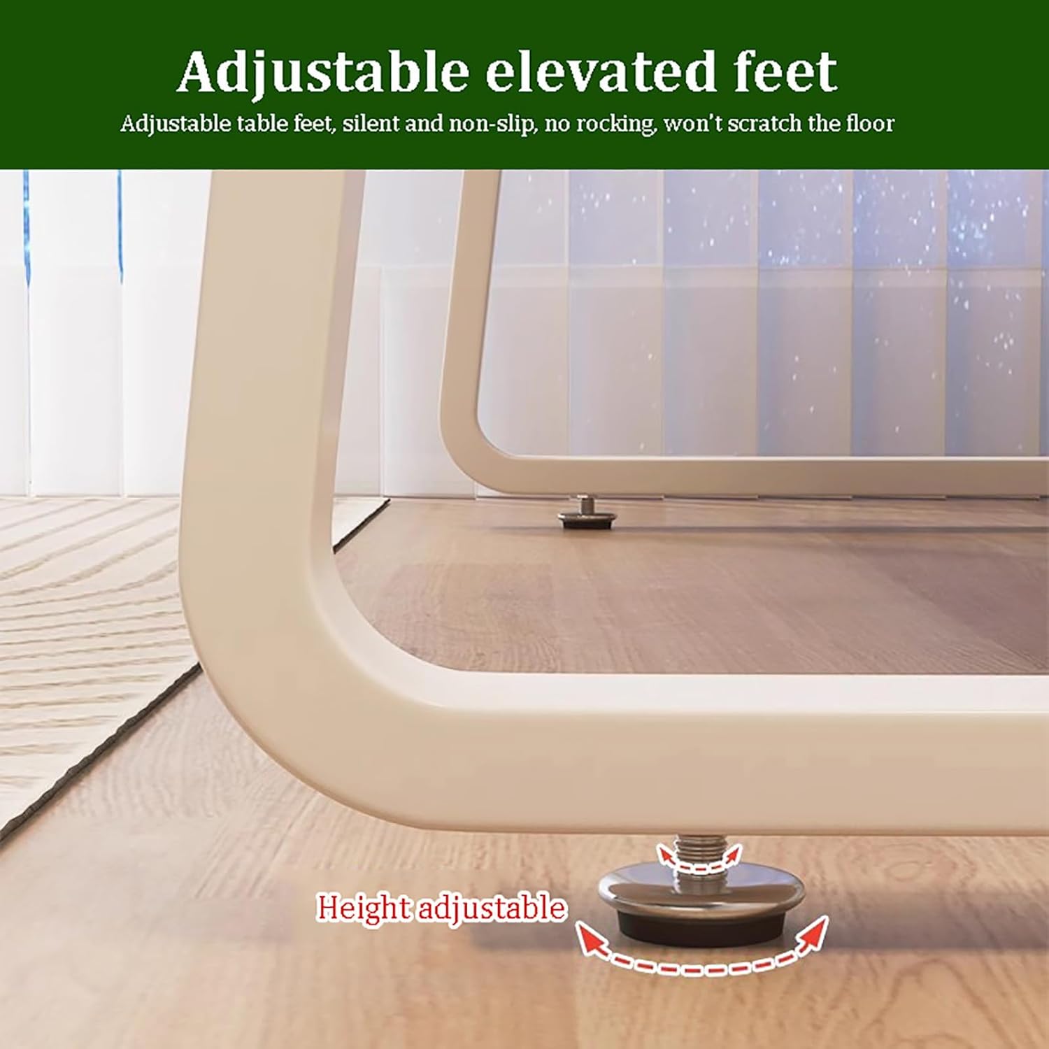 the desk leg can adjust 1-2cm lengths, made the table keep stable even on uneven floor.