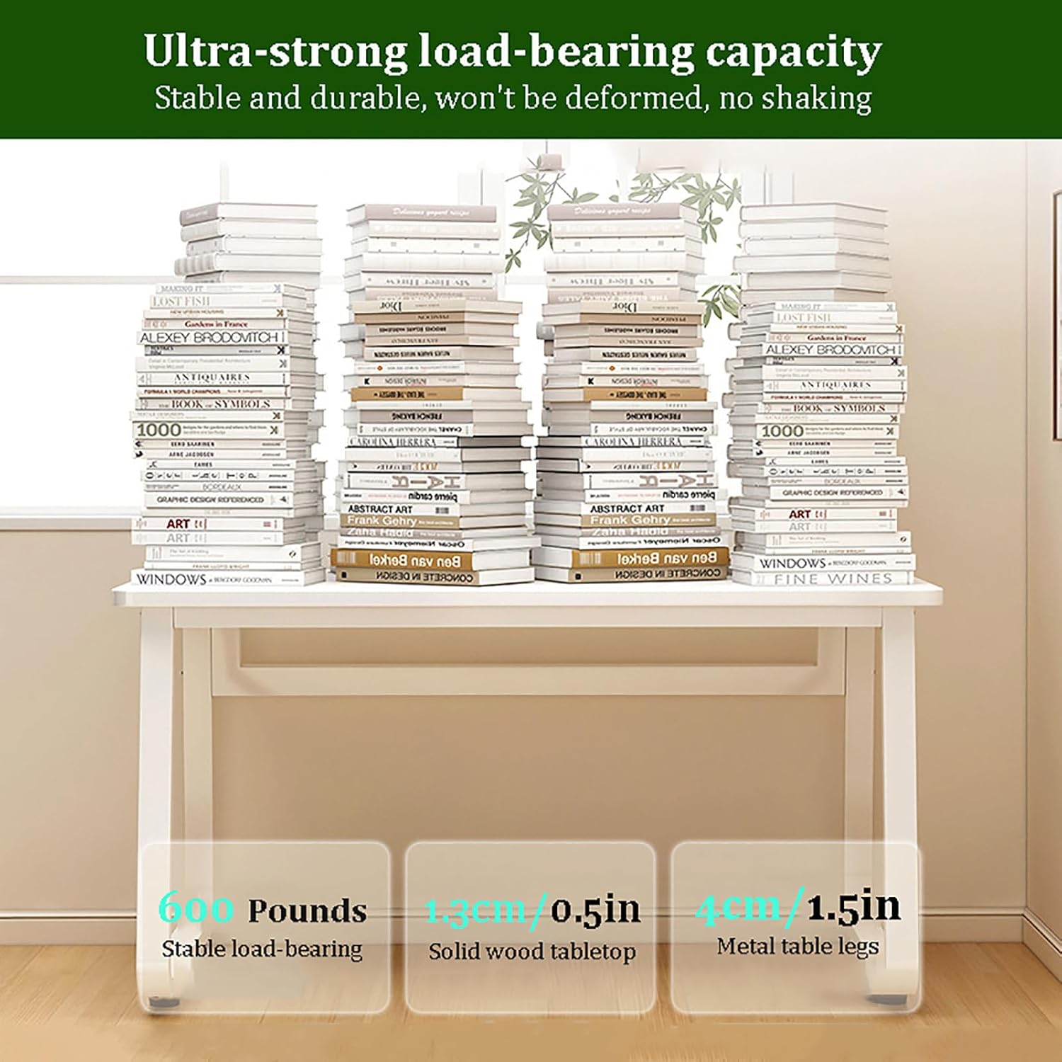 With its open-concept design and clean aesthetic, this contemporary computer desk makes a perfect addition to any home office or work space. The metal frame and thicker track-style legs ensure robust stability, sturdy enough to support an all-in-one computer, while the scratch- resistant laminate finish protects the desk's surface from daily wear and tear.Clean, minimalist design with an open-air style gives your office or home office a sleek, contemporary look.