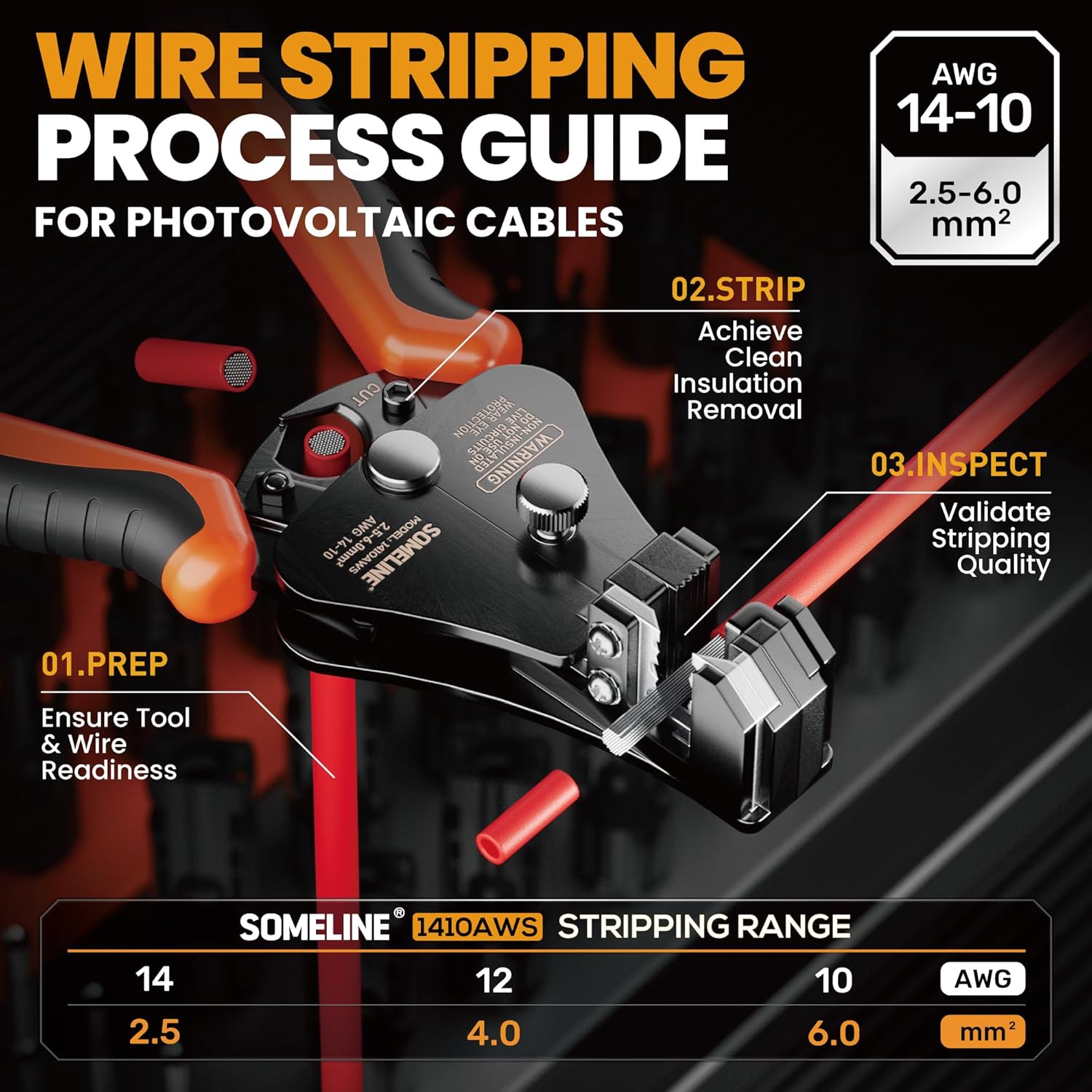 SOMELINE Solar Connector Crimping Tool Kit, 14-10 AWG Crimper for Solar Panel Cables Connectors, Toolbox Kit with 6 Pairs of Solar Connectors and Wrenches, Strippers, Crimpers and Cable Cutter
