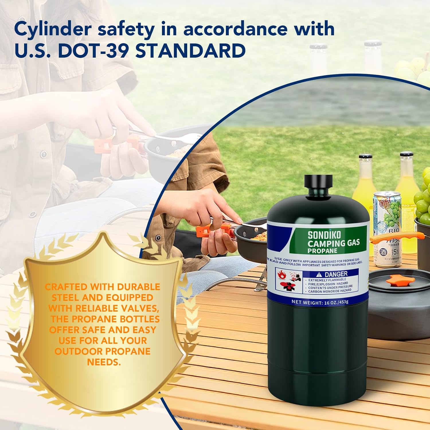 Sondiko Propane Tank 4 Pack, High Purity 1LB Propane Cylinder Tank 16 oz, Factory Prefilled and DOT Compliant, Premium Propane to Broil Sous Vide for Welding Brazing Soldering