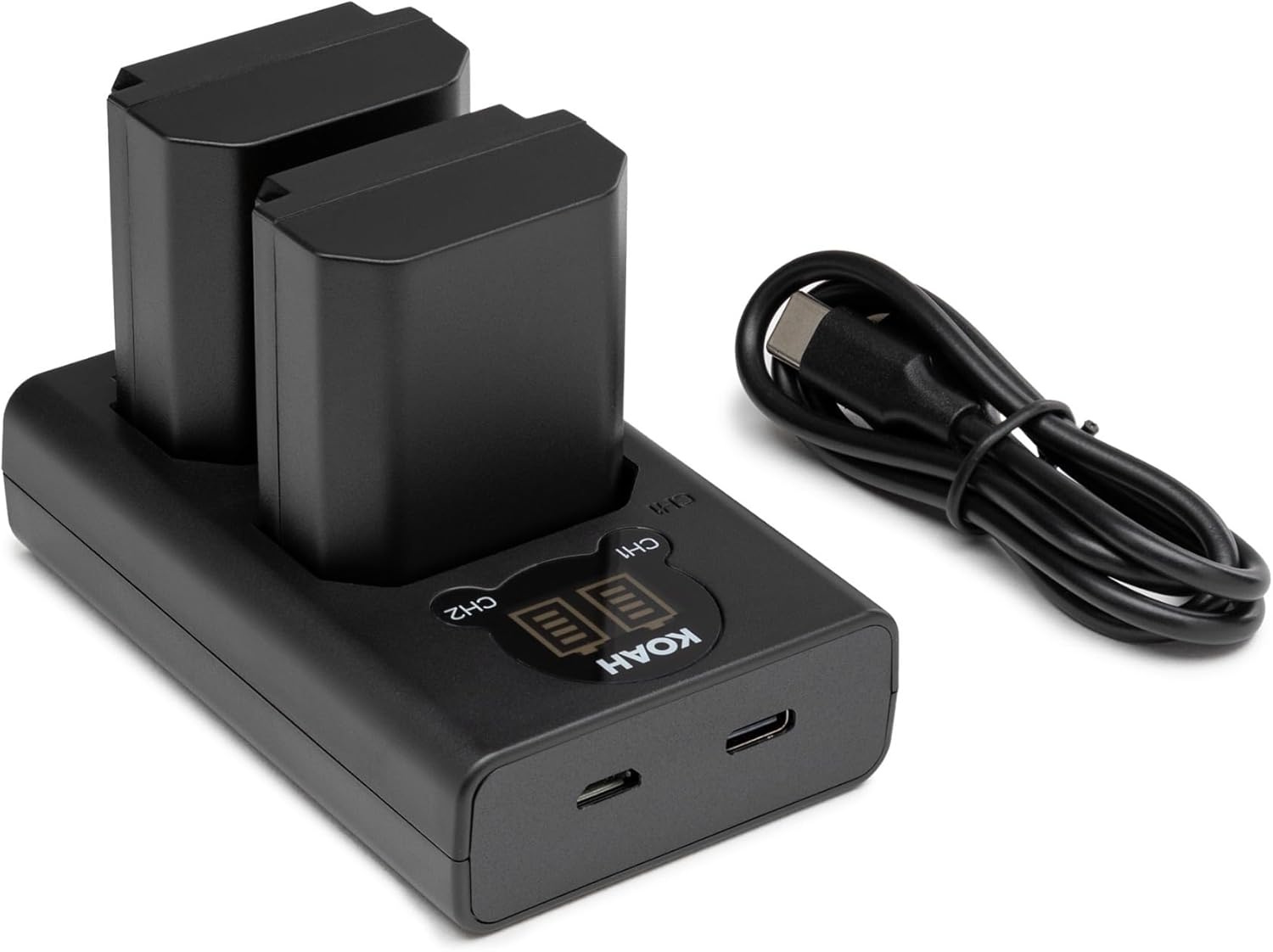 Two 2000mAh rechargeable 7.2V batteries and an LCD dual charger with USB input. Compatible with Sony NP-FZ100. Includes 3-year Koah USA warranty.