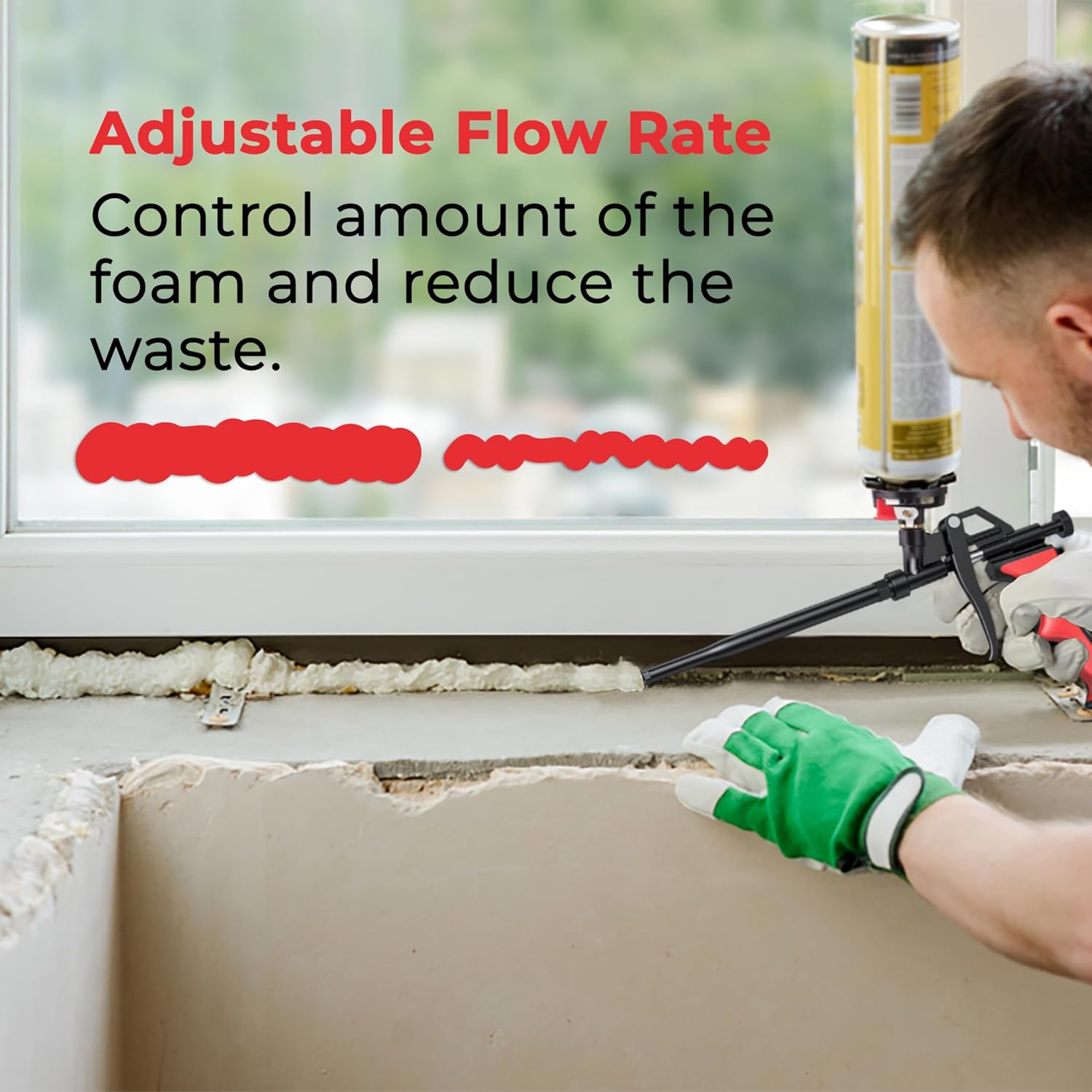 The Wolline Professional Foam Gun Insulation Applicator is a durable, reliable, and easily managed tool for applying polyurethane insulation or sealant foam around the house or job site. Expanding foam gun has a smooth trigger and flow control knob that promotes unrestricted flow while saving money on wasted straw foam cans.", "", "The foam spray gun's ABS Plastic handle ensures a steady comfortable grip and is suitable for time enduring, stress free application. Spray foam gun is built with teflon coated and durable component materials that are easy to clean. It is ideal for professional contractors and DIY enthusiasts.", "", "Polyurethane foam insulation, is a popular method used to seal and insulate various surfaces in construction and renovation projects. It involves the application of a specialized polyurethane foam using a foam gun, which allows for precise and controlled spraying. PU foam gun insulation offers several advantages over traditional insulation materials like fiberglass or cellulose. Here are some key features and benefits :", "Versatile Application: PU foam insulation can be applied to a wide range of surfaces, including walls, roofs, floors, and gaps around windows and doors. It adheres well to most materials, such as wood, concrete, metal, and plastic, creating a seamless and airtight barrier.Excellent Insulation Properties: Once cured, the polyurethane foam forms a dense and closed-cell structure that provides excellent thermal insulation. It helps to prevent heat transfer, reducing energy consumption for heating and cooling. This insulation value is commonly measured as the material's R-value.Air and Moisture Barrier: PU foam insulation creates an effective air and moisture barrier, sealing gaps and cracks where air leakage and water penetration could occur. It helps to prevent drafts, moisture buildup, and the potential.High Expansion and Adhesion: When sprayed, the polyurethane foam expands to fill voids and irregular shapes, ensuring a tight seal. It adheres to the surface, forming a durable and long-lasting insulation layer.Sound Dampening: PU foam insulation has sound-absorbing properties, reducing noise transmission from outside sources. It can help create a more comfortable and quieter indoor environment.Energy Efficiency: By reducing heat loss or gain through insulation, PU foam gun insulation contributes to improved energy efficiency in buildings. This can lead to lower heating and cooling costs over time.Easy Application: PU foam gun insulation is applied using a foam gun, which allows for precise control and targeted application. The foam gun typically features an adjustable nozzle that regulates the foam flow and can be used for both small and large-scale projects.", "It's important to note that PU foam insulation requires proper handling and installation to ensure safety and effectiveness. Protective equipment, such as gloves and goggles, should be worn during application, and proper ventilation is necessary until the foam cures. It's recommended to consult professional installers or follow manufacturer guidelines for best results.