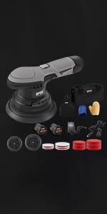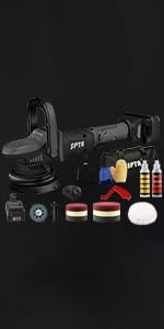 SPTA Mini Orbital Polisher - 3 Inch 10mm/780W Variable Speed Dual Action With Polishing Pads, Sanding Discs, Pad Conditioning Brush