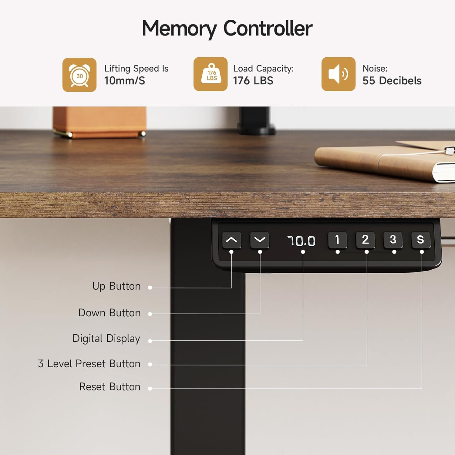 Standing Desk with 2 Adjustable Monitor Shelves, 71 x 24 Inches Electric Stand Up Desk with Memory Controller and Adjustable Height from 28-46 inches for Computer Workstations, Rustic Brown