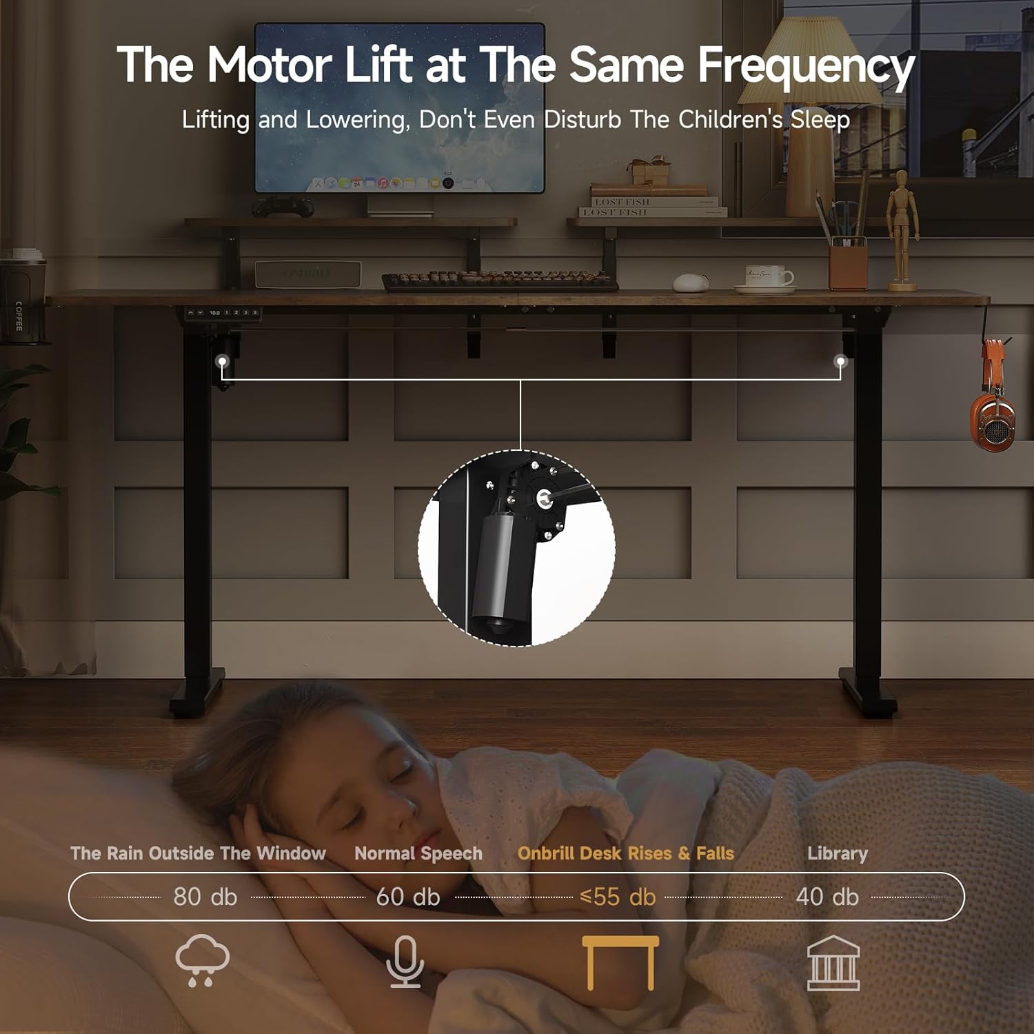 ONBRILL Electric Sit Stand Adjustment Desk with 2 Adjustable Monitor Shelves