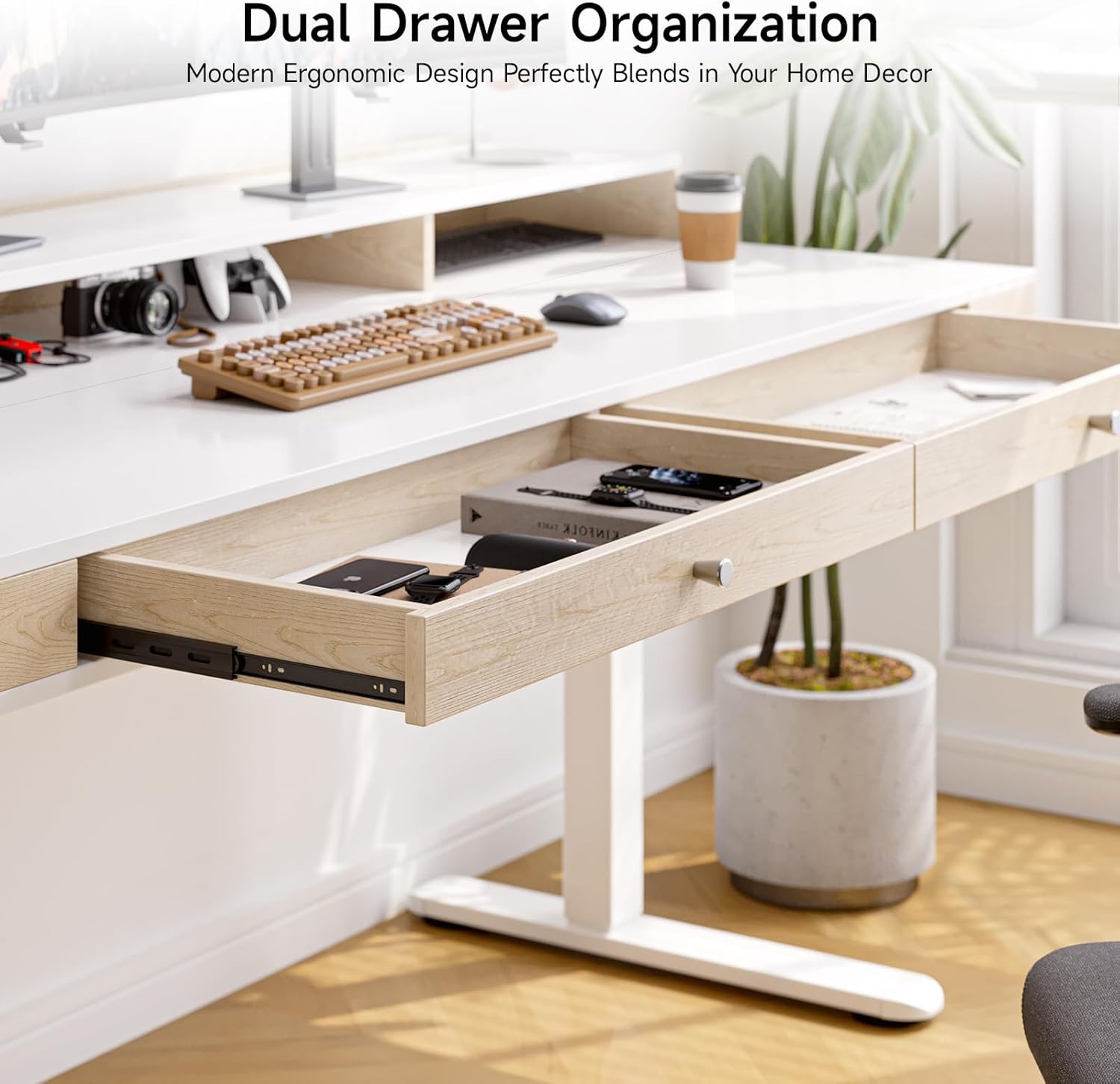 ONBRILL Sit to Stand Desk with Drawers Have 2 Colors And 3 Sizes