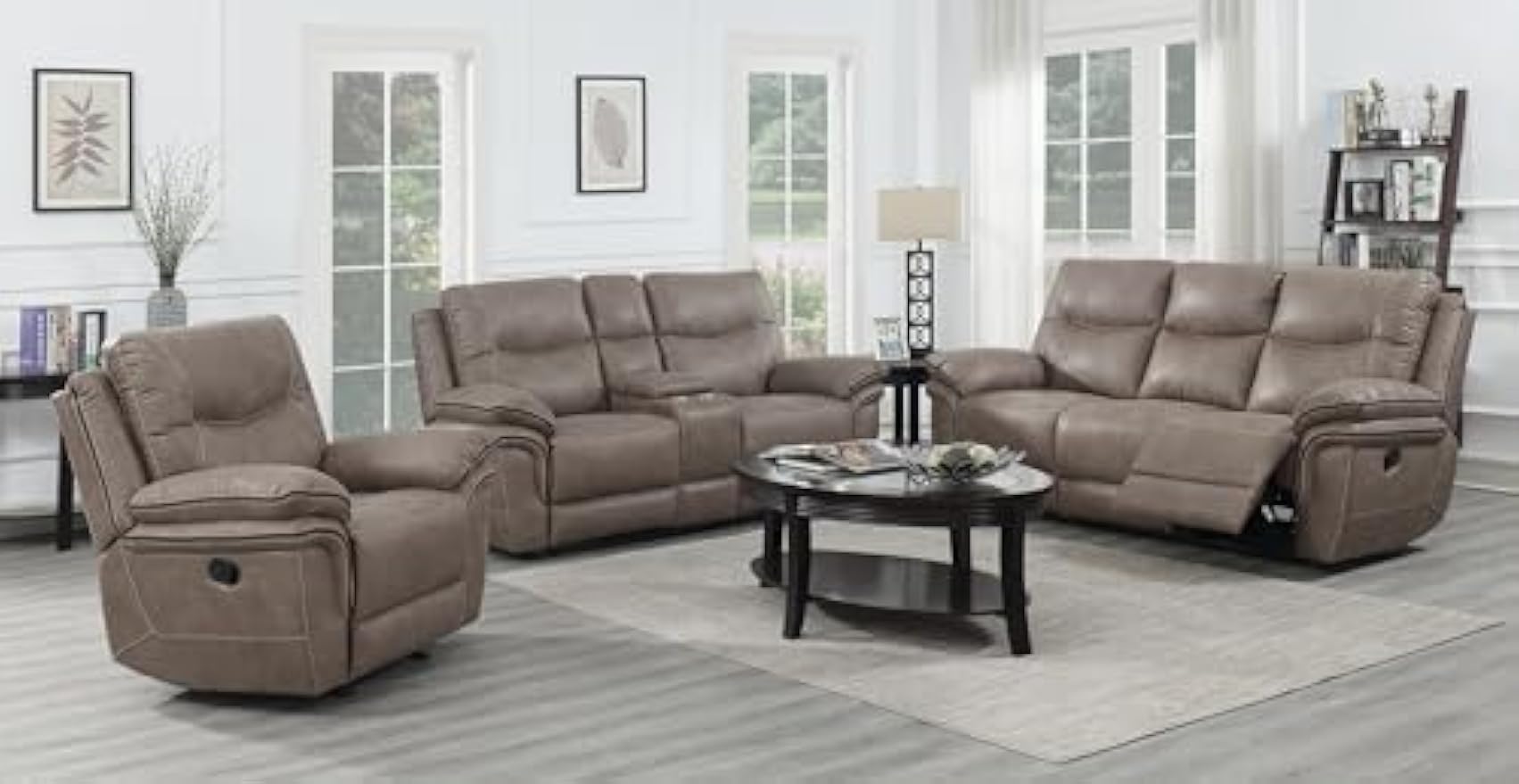 Recline in comfort with Isabella by Steve Silver Company. Pillowtop arms blend with backs that feature extra padding to give this reclining seat unbelievable comfort. The sand fabric gives the set a light yet neutral look.