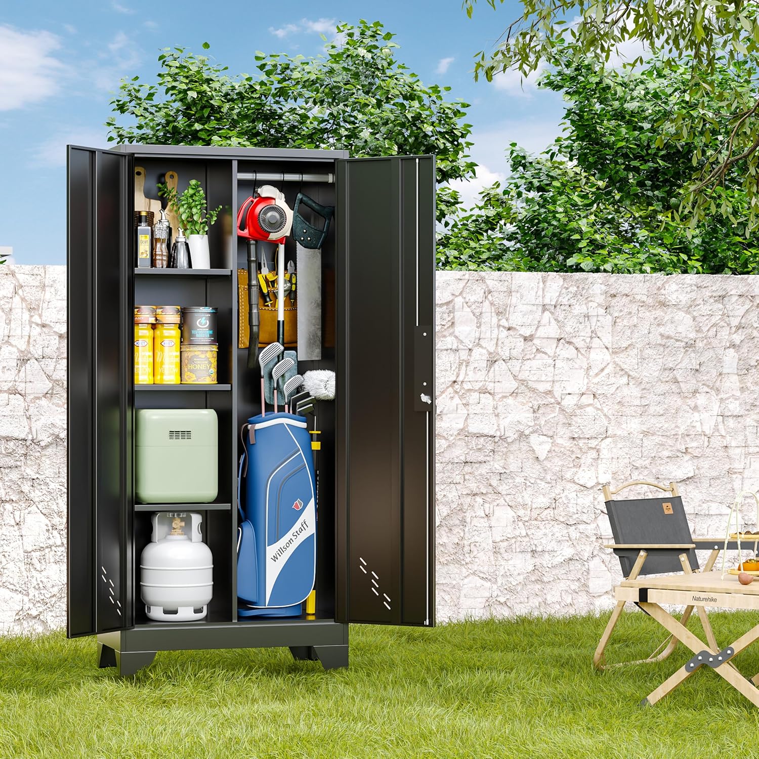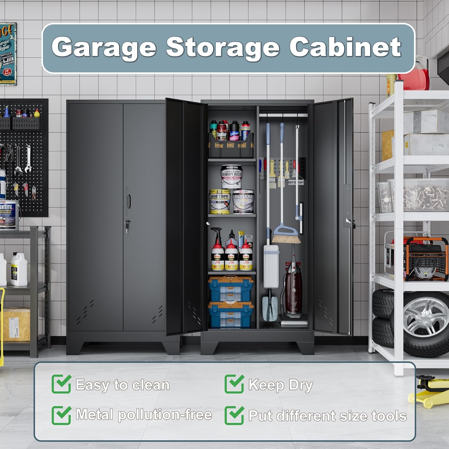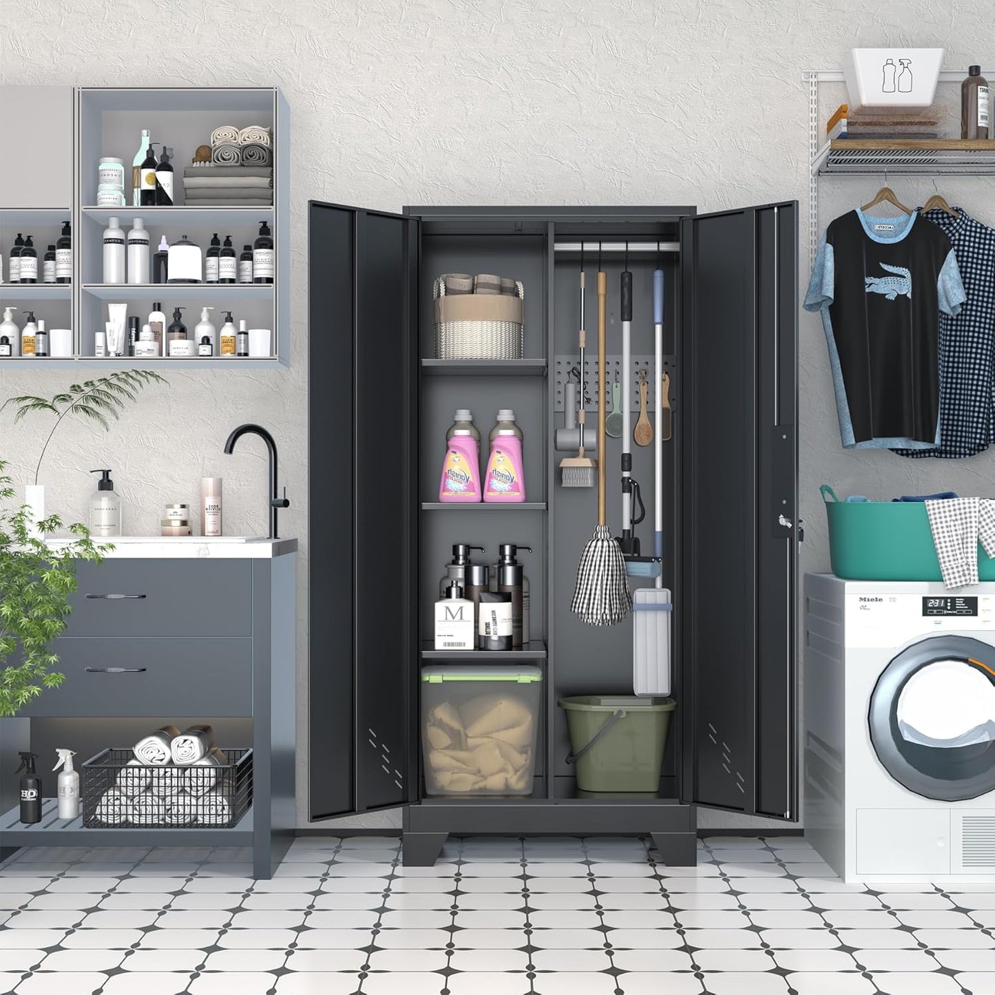 Storage Cabinets with Locking Doors,61" Tall Metal Cleaning Tool Cabinet,Broom Storage with Shelves for Laundry Room,Home Office (61" h Cabinet)