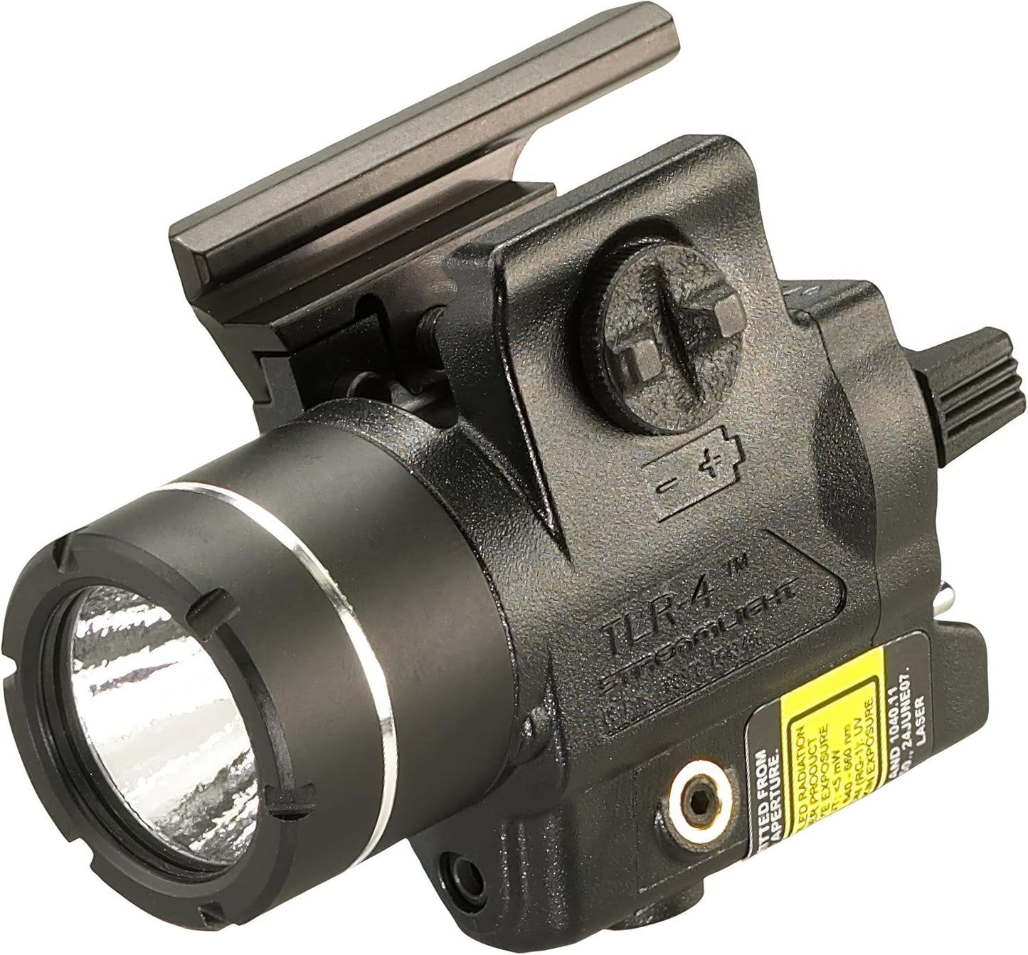 Ultra lightweight and compact, the TLR-4 Weapon Mounted Tactical Light with integrated aiming laser features the latest in C4 LED technology. The light provides 1.5 hours of continuous runtime when in dual mode with the high power visible laser. Rail clamp designed to rapidly attach/detach from side of weapon. Case body is made from impact resistant Engineering polymer. Face cap is made using 6000 series machined aircraft aluminum with black anodized finish. Borofloat high temperature glass lens. Light source uses C4 LED technology, impervious to shock with a 50,000 hour lifetime. 5,000 c and ela peak beam intensity and 110 lumens measured system output. Textured parabolic reflector produces a concentrated beam with optimum peripheral illumination. 640-660nm red laser provides long-range targeting. Optimized electronics provide regulated intensity. Ambidextrous momentary/steady On-Off switch. Three position Mode Selector switch for Laser only, LED illumination only or both Laser and LED. Run time is 1.5 hours regulated run time to the 10% output level for LED only or LED and Laser. Run time is 11 hours regulated output for Laser only. Securely fits a broad range of weapons using key kit provided.