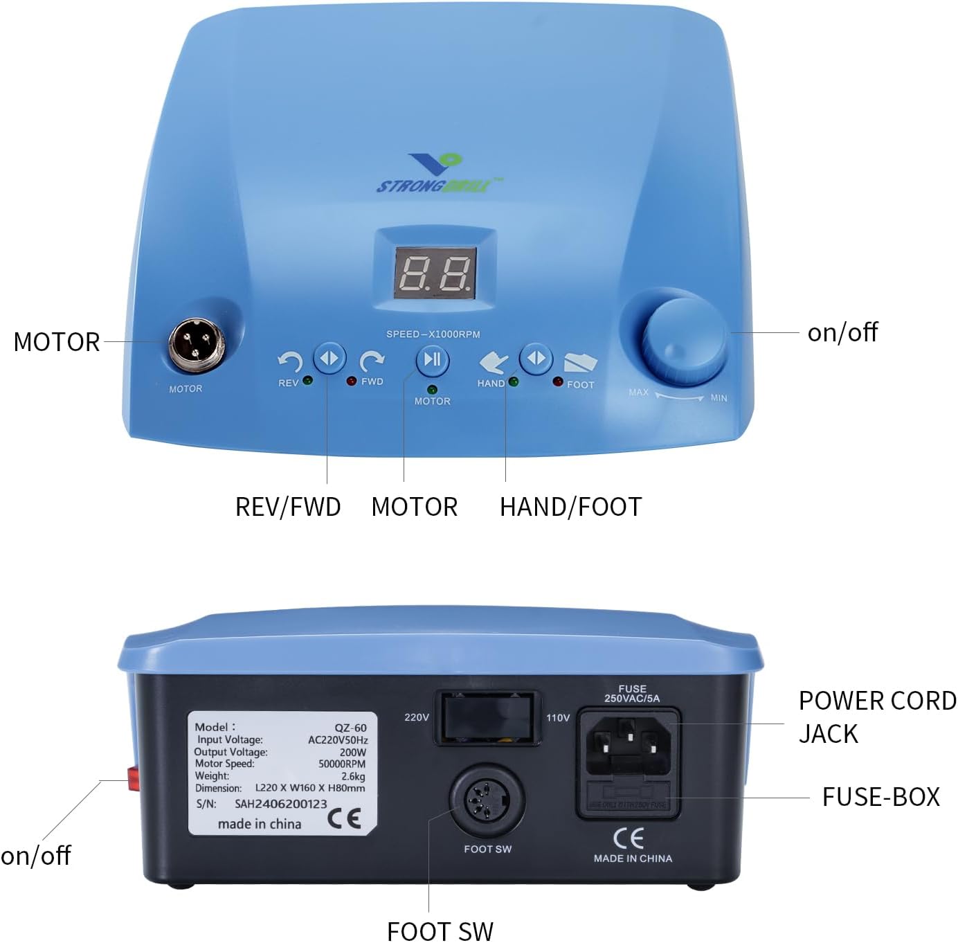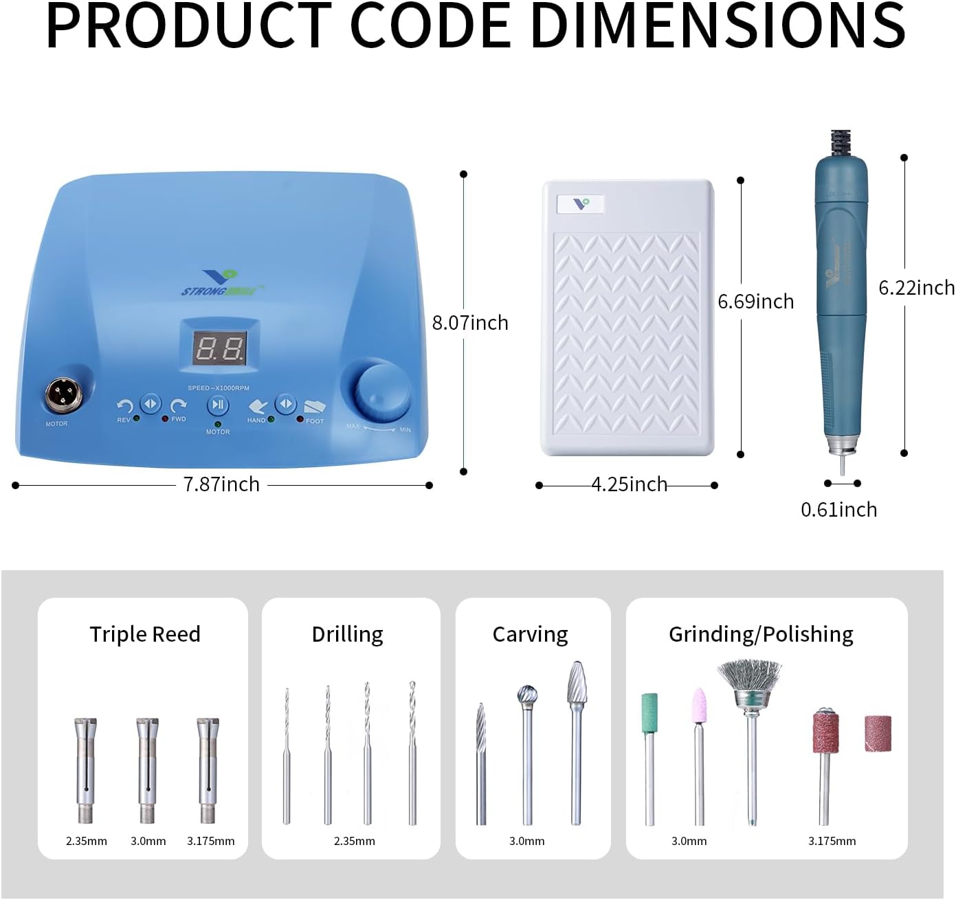 Strongdrill qz60-107 50000rpm Brushless Powerful Rotary Tool Kit- Hands-Free Speed Control for Precision Crafts & Projects, Detail Sander, Polisher, Engraver, Etcher, handpiece