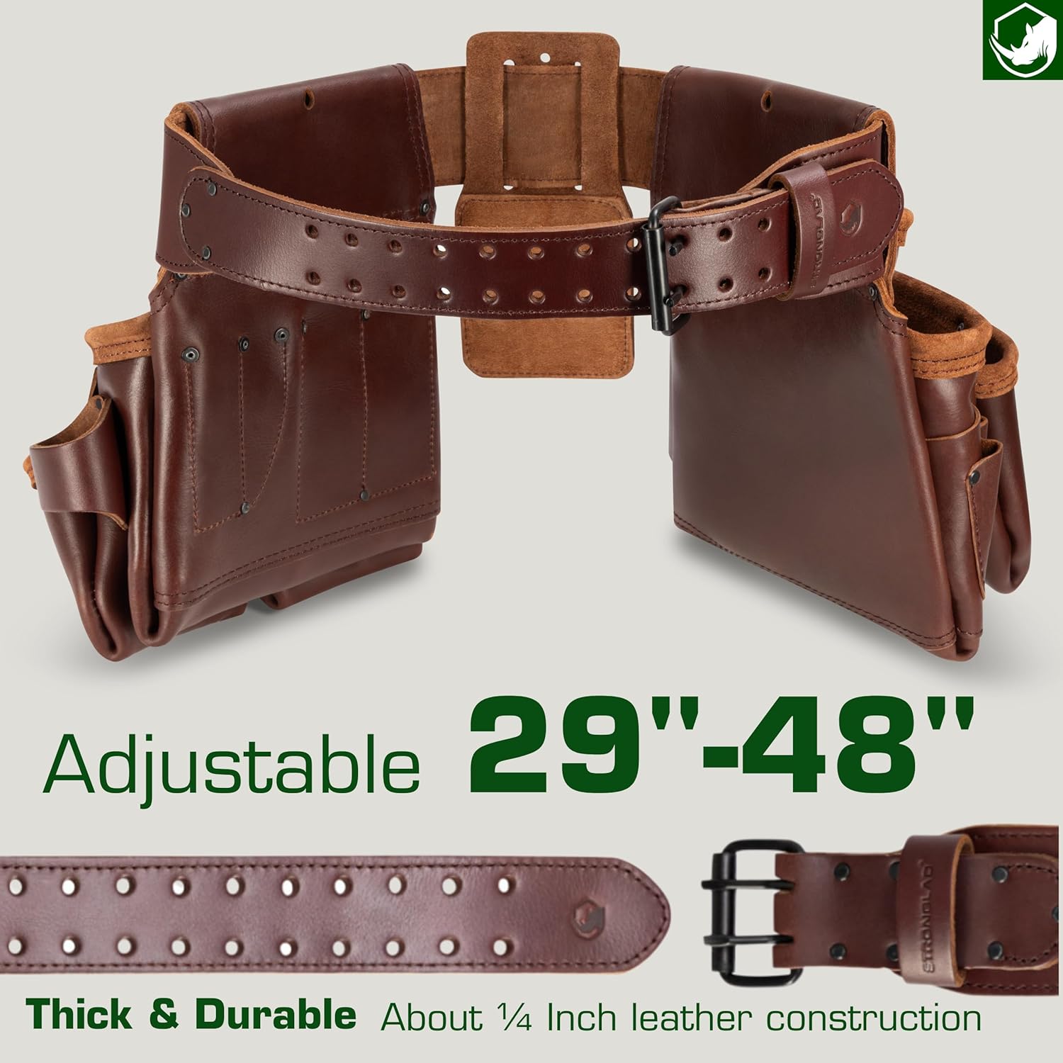 STRONGLAD Tool Belt - Framing Tool Belt for Carpenters - Tool Belts for Men - Carpenter Pouches for Construction - 21 Pockets, Oil-Tanned Full-Grain Leather T800