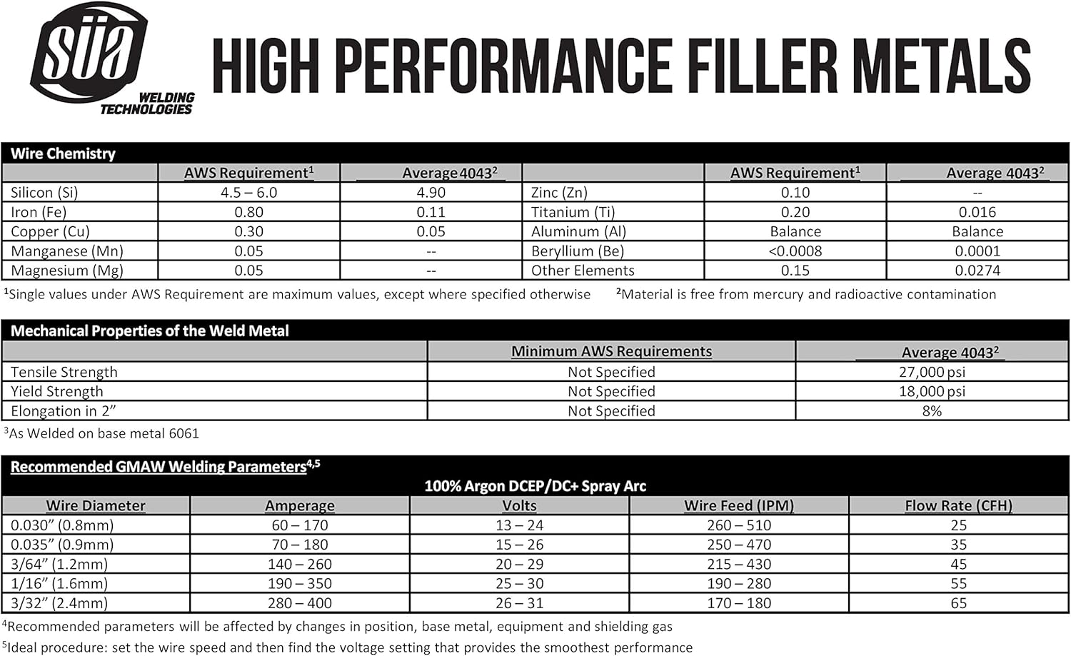 Merchant VideoSÜA – ER4043 Aluminum MIG Wire Technical Parameters