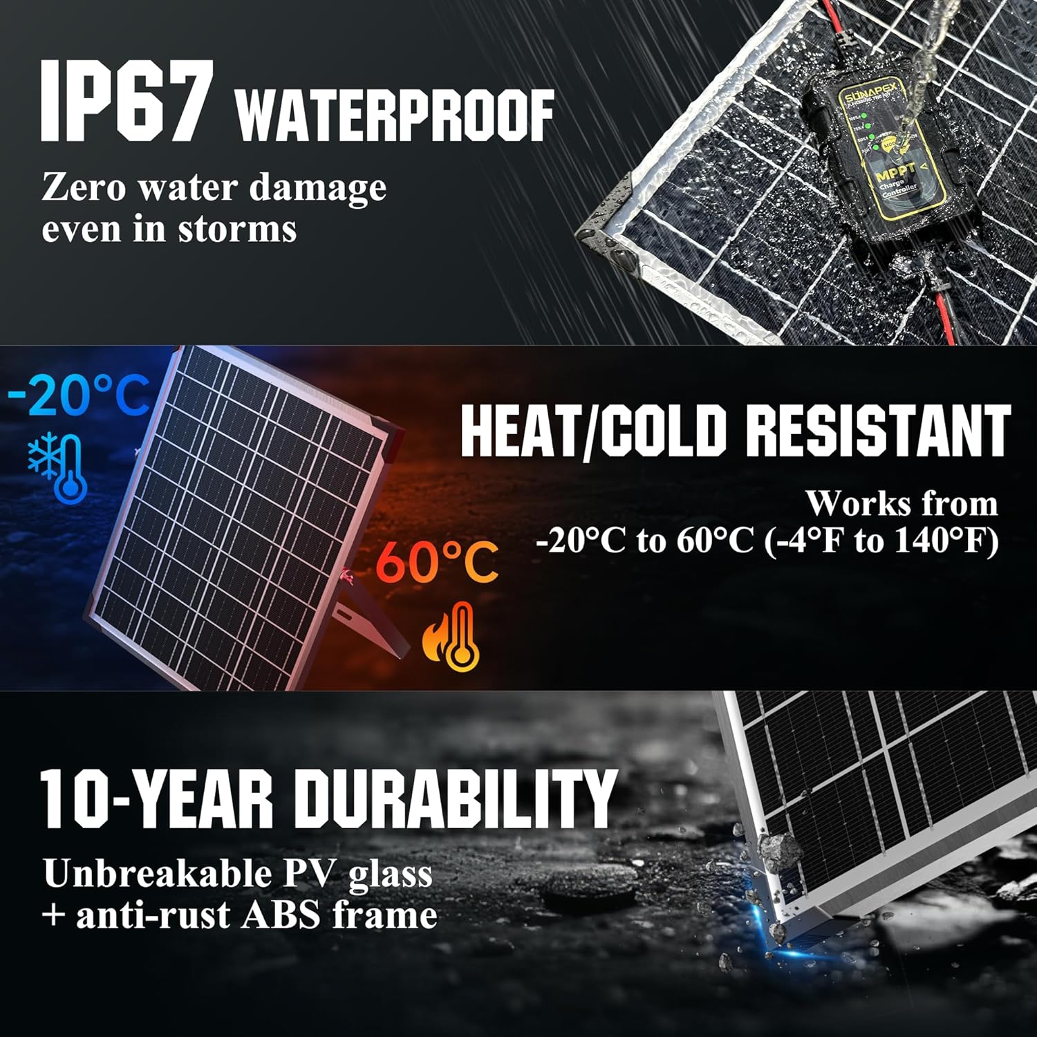 SUNAPEX 12V Solar Battery Charger: 25W Waterproof Solar Panel Kit- Aluminum Trickle Charger for Car Battery with MPPT Controller - Battery Tender Motorcycle Boat Marine RV Trailer Tractor Truck
