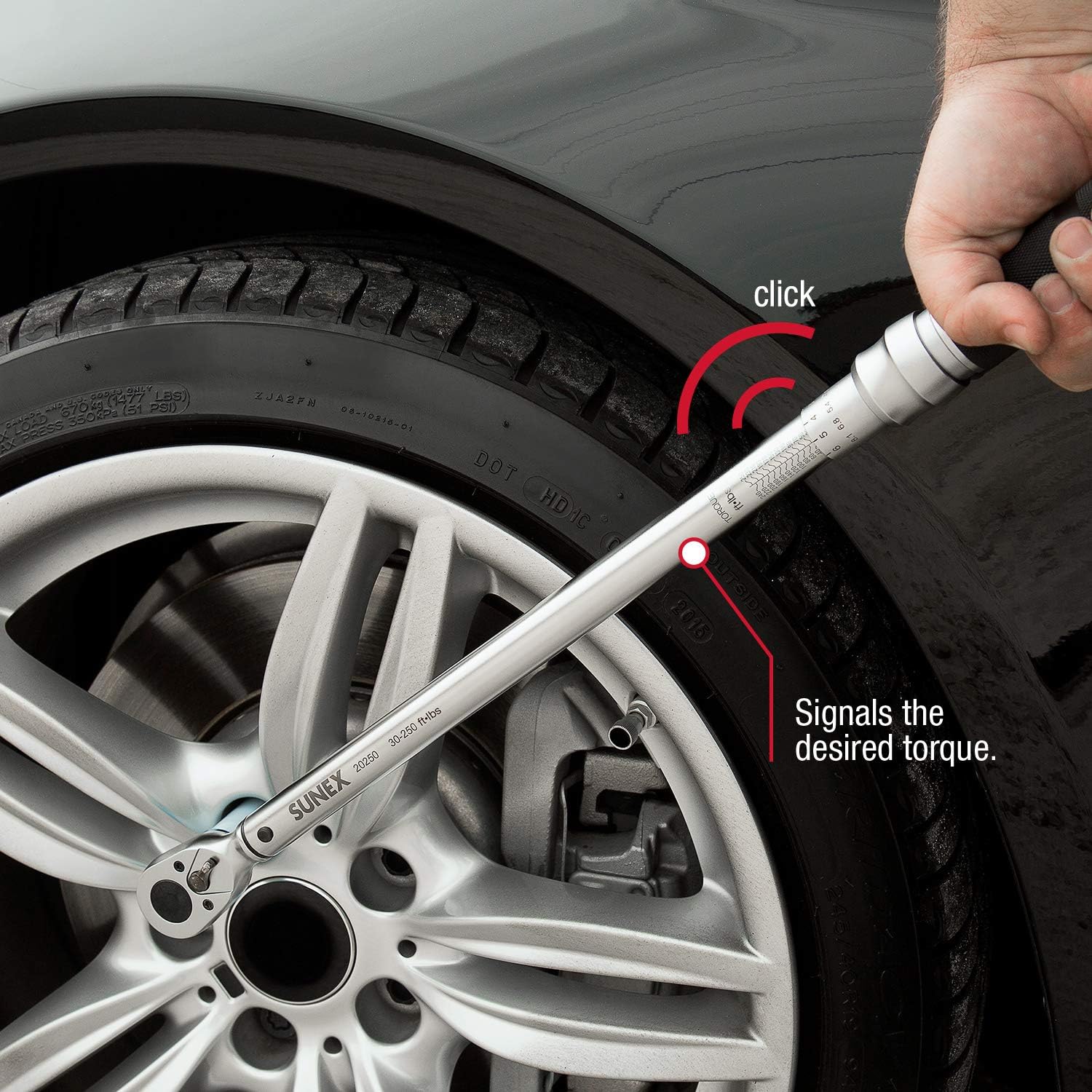 SUNEX TOOLS 20250, 1/2" Drive, 48T Torque Wrench, 30 To 250'-Lb, 48 Tooth Ratcheting Mechanism, Accurate To 3% Clockwise & 6% Counterclockwise, Audible Click, Heat Treated Tube, Aluminum Handle