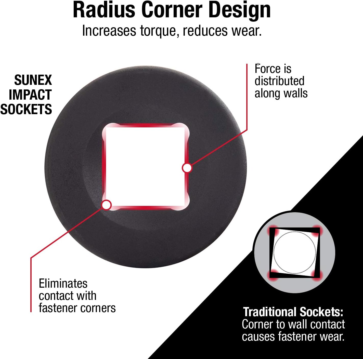 SUNEX TOOLS 2504, 1/2 Inch Drive Impact Extension Set, 4 Piece, SAE, 3 Inch - 15 Inch, Cr-Mo Steel, Radius Corner Design, Wobble Drive, Steel Ball Retainer, Dual Size Markings, with Storage Tray
