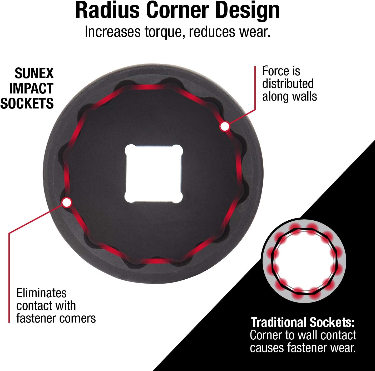 SUNEX TOOLS 2695, ½ Inch Drive Driveline Limited Clearance Socket Set, 12-Point, 9-Piece, Metric, 8mm-17mm, Cr-Mo Steel, Heavy Duty Storage Case