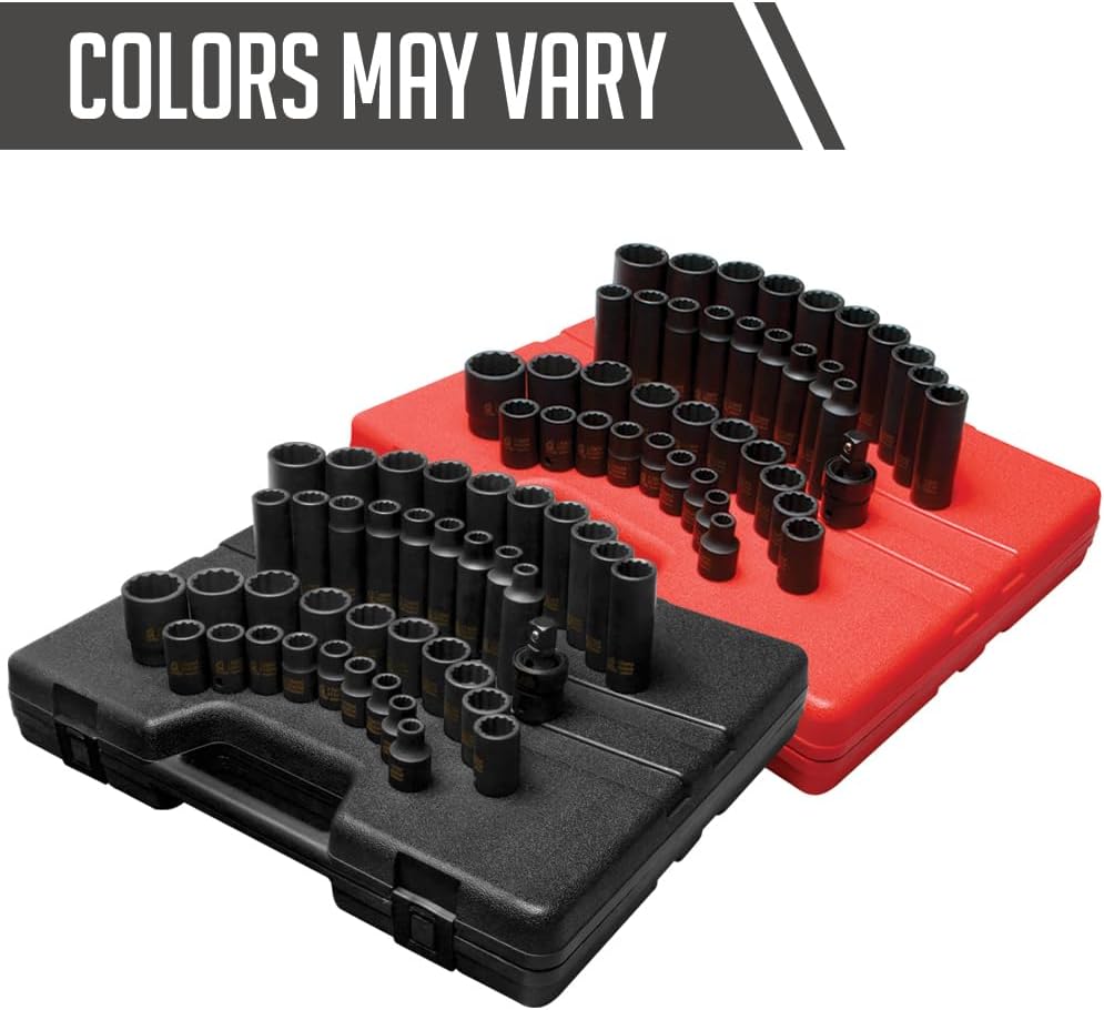 This Sunex 1/2 inch drive master 12 point 39 piece metric impact socket set includes the most common sizes used for automotive repair. It includes 39 metric sockets. It is made of CR-MO alloy steel for long life. It is fully guaranteed and includes a heavy duty blow molded storage case.