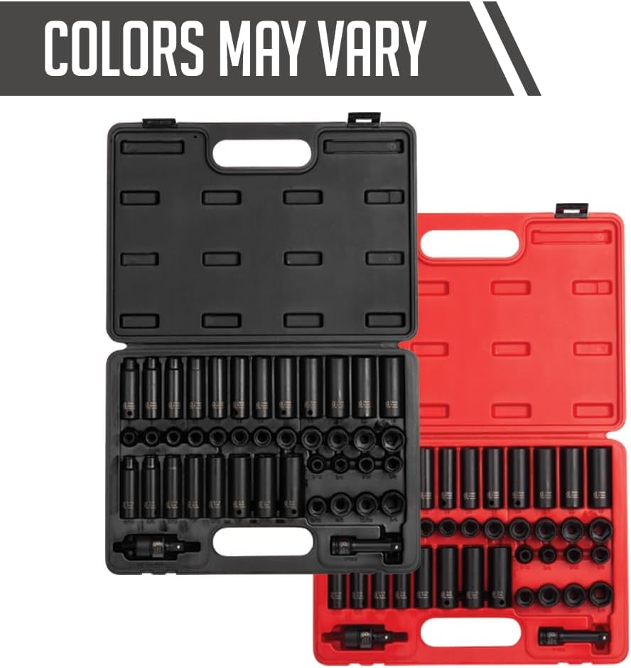 The Sunex 3342 3/8” drive Master impact socket set includes SAE sizes from 5/16” to 3/4” and metric sizes from 10mm to 19mm in both standard and deep lengths. It also includes a Universal joint and a 3” extension. Each socket has been forged from CR-MO alloy steel, Designed with radius corner, Made with chamfered openings, and marked by both laser etching and roll stamping to ensure permanent socket identification. All of this ensures our sockets’ professional-level performance-convenientlyy stored in one heavy duty Storage case. Meets ANSI standards.