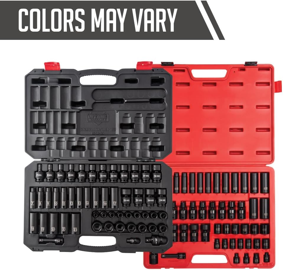 SUNEX TOOLS 3351, 3/8 Inch Drive Impact Socket Set, 51-Piece, Metric, 7mm - 22mm, Standard/Deep/ Universal, Cr-Mo Steel, Radius Corner Design, Heavy Duty Storage Case, Meets ANSI Standards