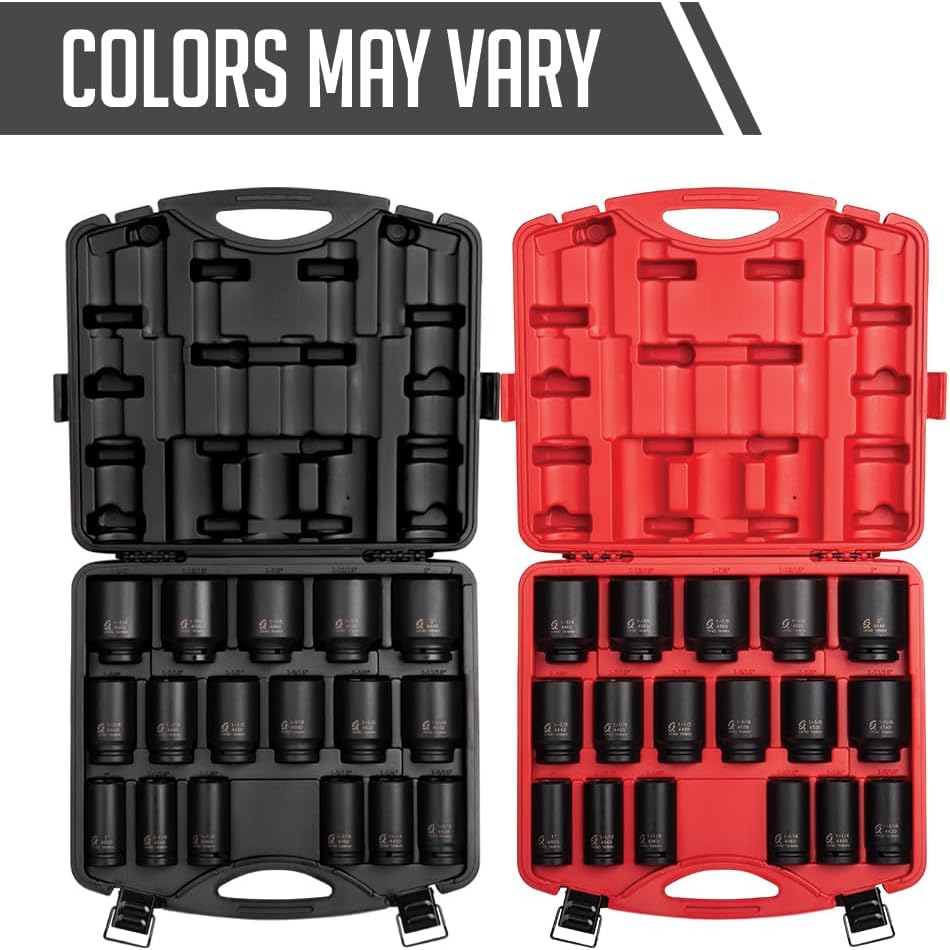 SUNEX TOOLS 4685, 3/4 Inch Drive Deep Impact Socket Set, 17-Piece, SAE, 1"-2", Cr-Mo Steel, Radius Corner Design, Dual Size Markings, Heavy Duty Storage Case