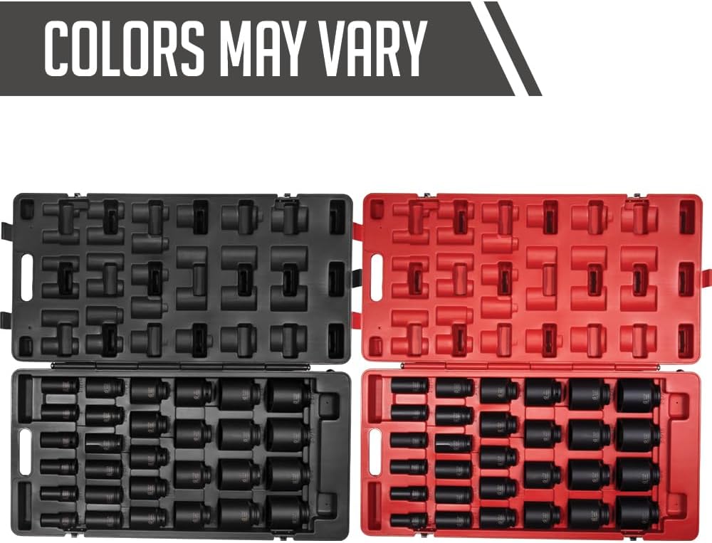 This Sunex 3/4-inch drive SAE deep master 29 piece socket set will give you years of usage. It features a a blow-mold case with wheels. Set includes: 3/4" (424D), 13/16" (426D), 7/8" (428D), 30mm (430M), 1" (432D), 1-1/16" (434D), 1-1/8" (436D), 1-3/16" (438D), 1-1/4" (440D), 1-5/16' (442D), 1-3/8" (444D), 1-7/16" (446D), 1-1/2" (448D), 1-9/16" (450D), 1-5/8" (452D), 1-11/16" (454D), 1-3/4" (456D), 1-13/16" (458D), 1-7/8" (460D), 1-15/16" (462D), 2" (464D), 2-1/16" (466D), 2-1/8" (468D), 2-3/16" (470D), 2-1/4" (472D), 2-5/16" (474D), 2-3/8" (476D), 2-7/16" (478D), 2-1/2" (480D).