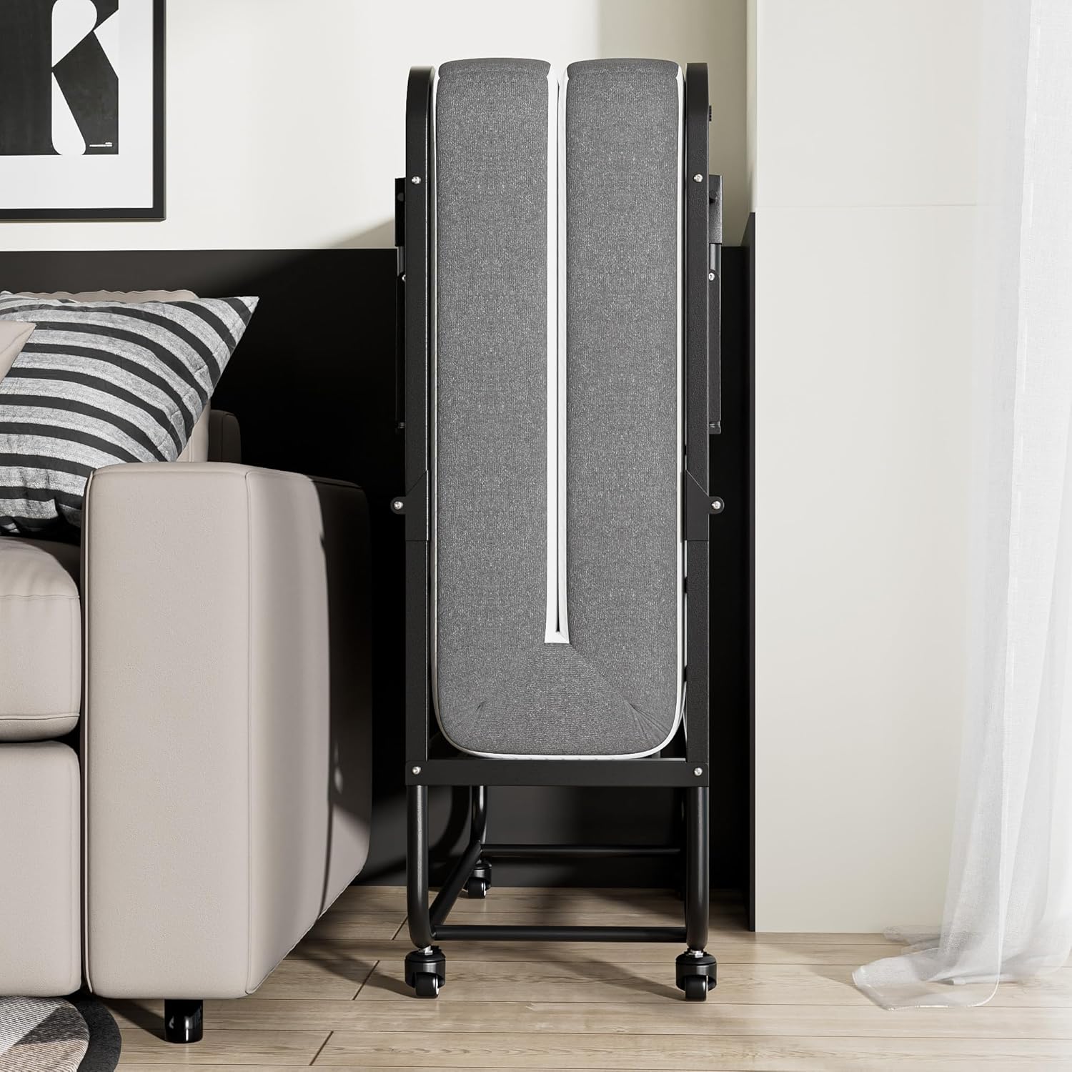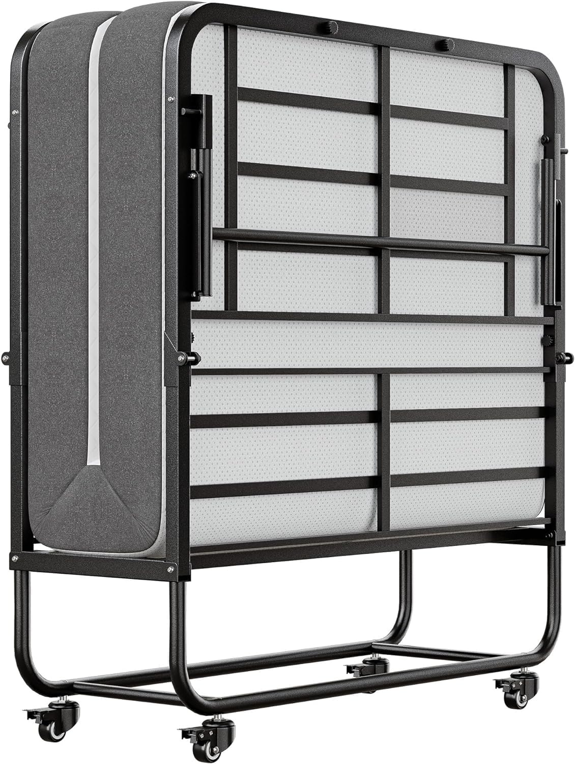 SunsGrove Twin Folding Bed with Mattress, 75" x 38" Folded Bed, Rollaway Bed Guest Bed Portable Foldable Extra Bed for Adults, Fold up Bed with 5" Memory Foam Mattress, Space-Saving Sturdy Metal Frame