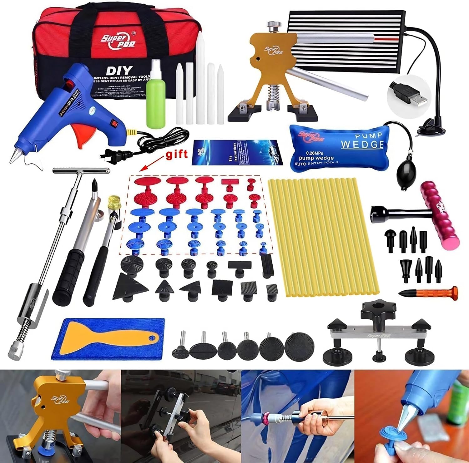 Super PDR Dent Puller Kit Paintless Dent Repair Kit for Car – Slide Hammer Suction Cup and PDR Light for 98% Auto Body Dent Removal, Hail Damage & Appliance Dents or Vehicle Dent Removal