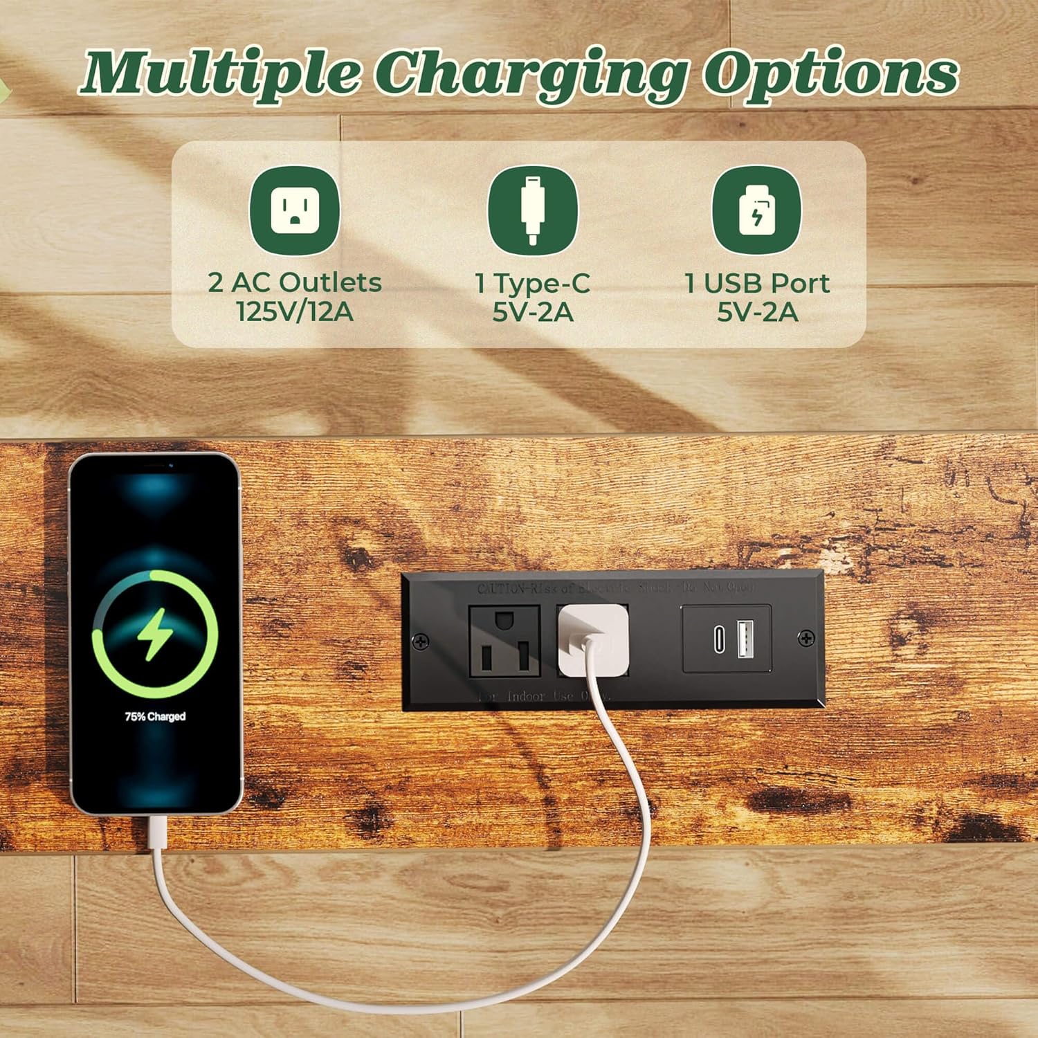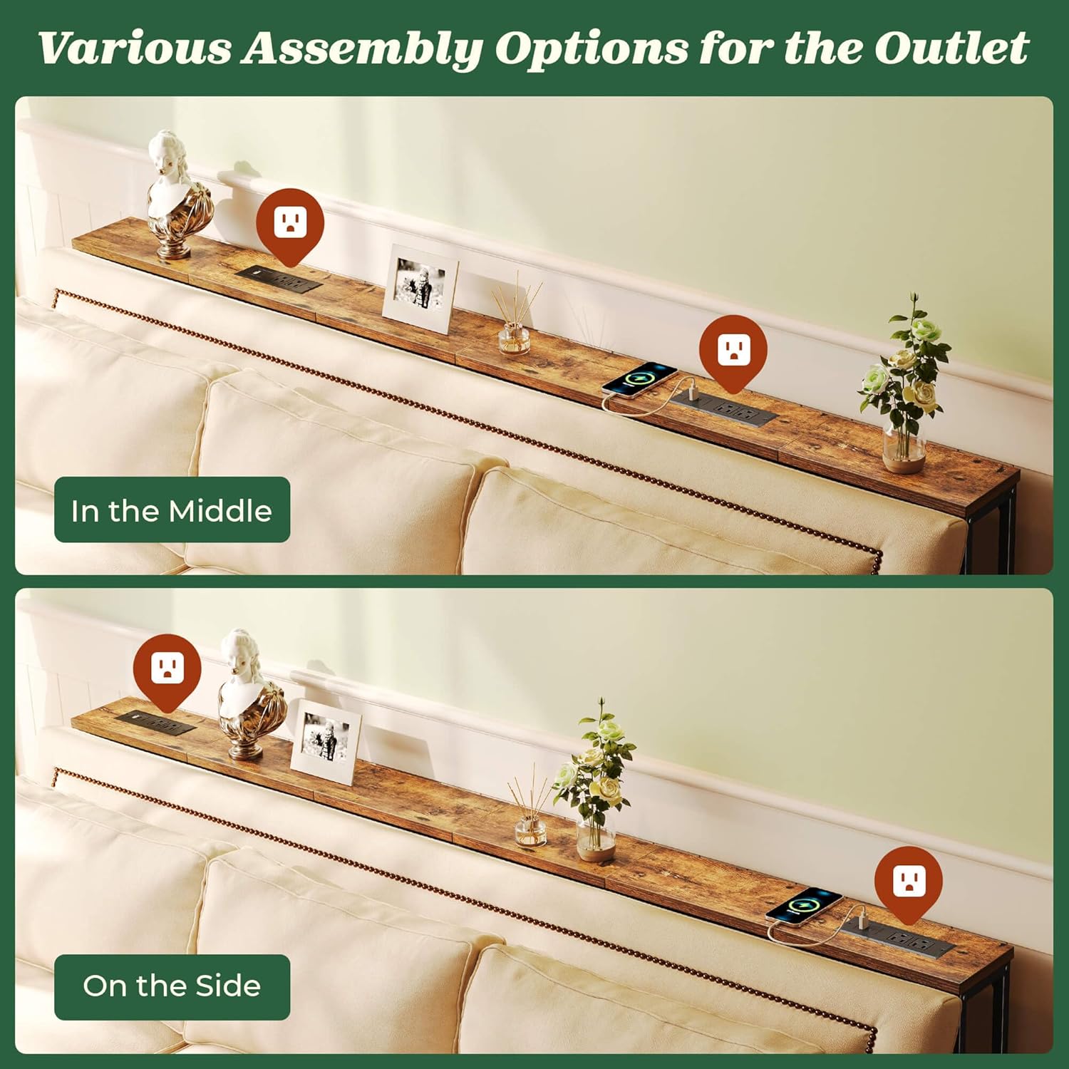 SUPERJARE 78.8 inch Narrow Console Table with Outlet, Sofa Table Set of 2, Behind Couch Table, Long Entryway Tables with Charging Station, for Living Room, Rustic Brown