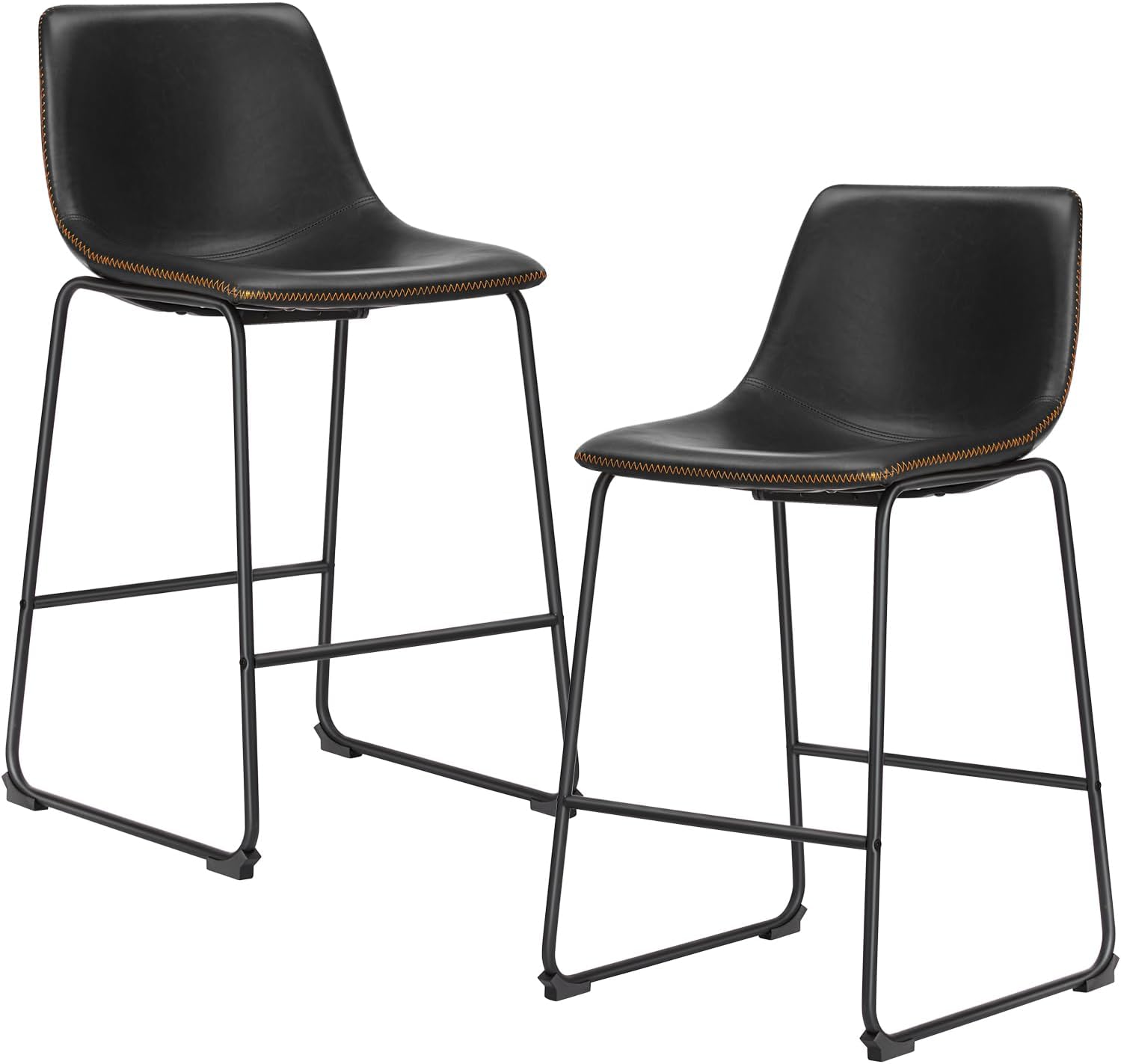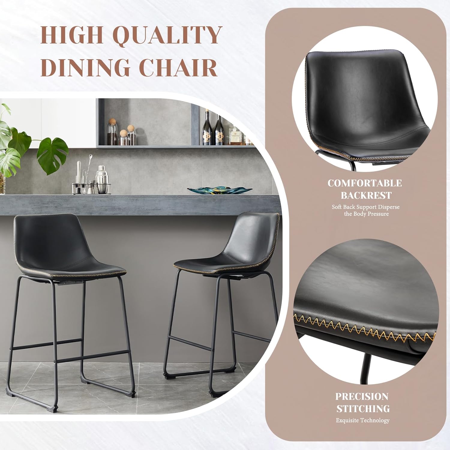 Sweetcrispy Counter Height Bar Stools Set of 2, 26 inch Height Stool Faux Leather Barstools with Back, Armless Kitchen Island Countertop Comfortable Modern Chairs with Metal Legs - Classic Black