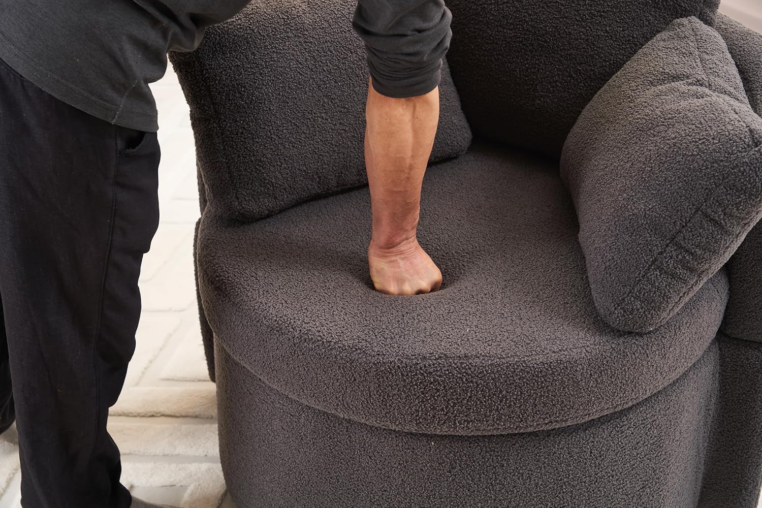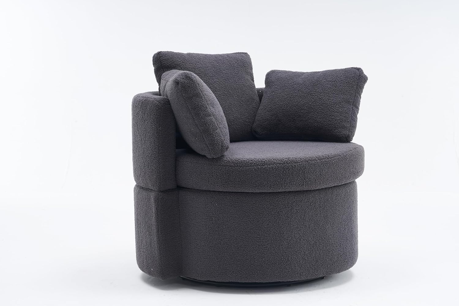 Swivel Accent Chair 360° Barrel Armchair with Storage, Modern Living Room Chair Upholstered Round Club Chair with Back Cushion, Teddy Fabric Comfy Chair for Bedroom Reading Room, Dark Grey