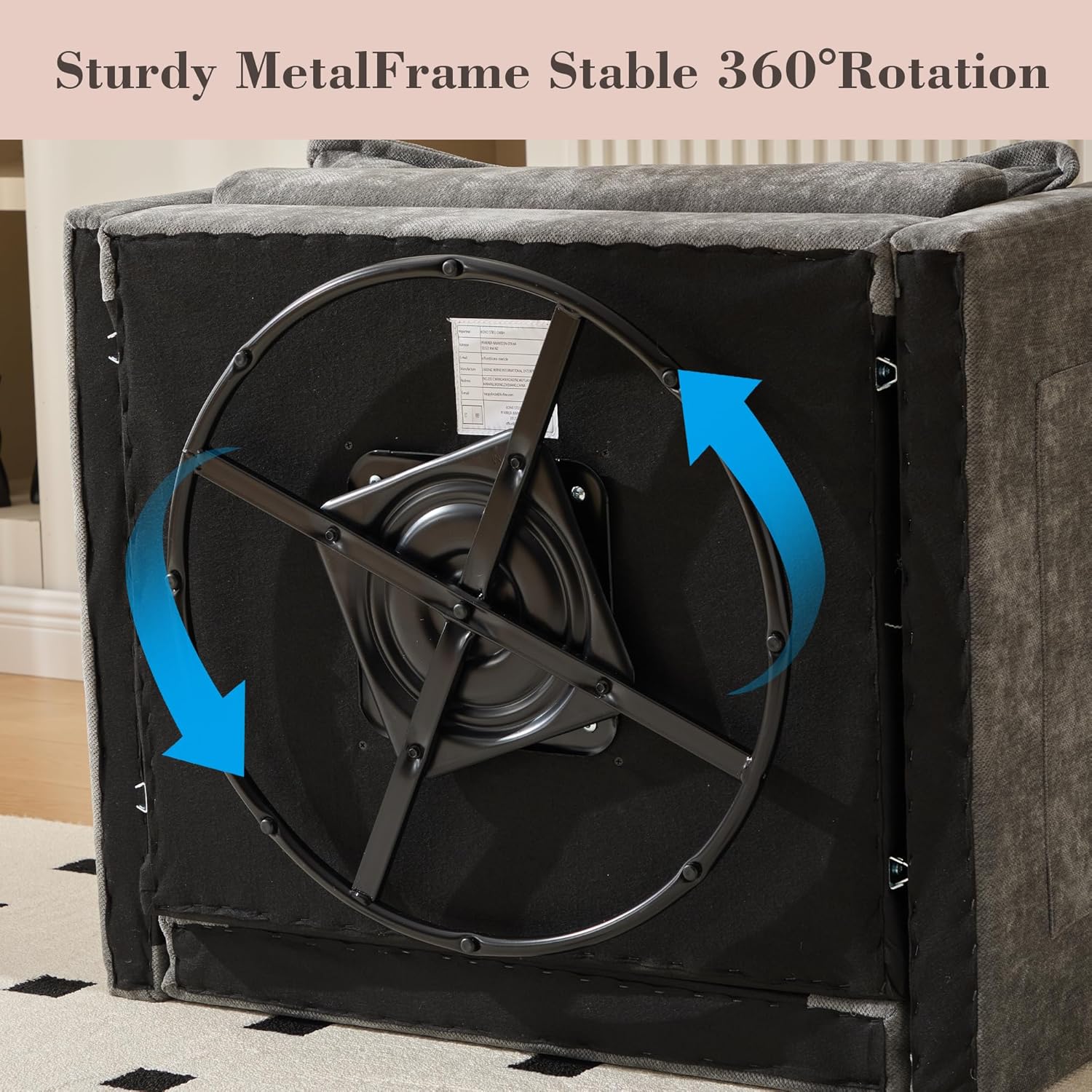 Swivel Accent Chair, 360° Rotating Square Arm Chair, Modern Accent Chair with Solid Metal Base, Chenille Comfy Upholstered Single Sofa for Living Room Bedroom Office (Gray)