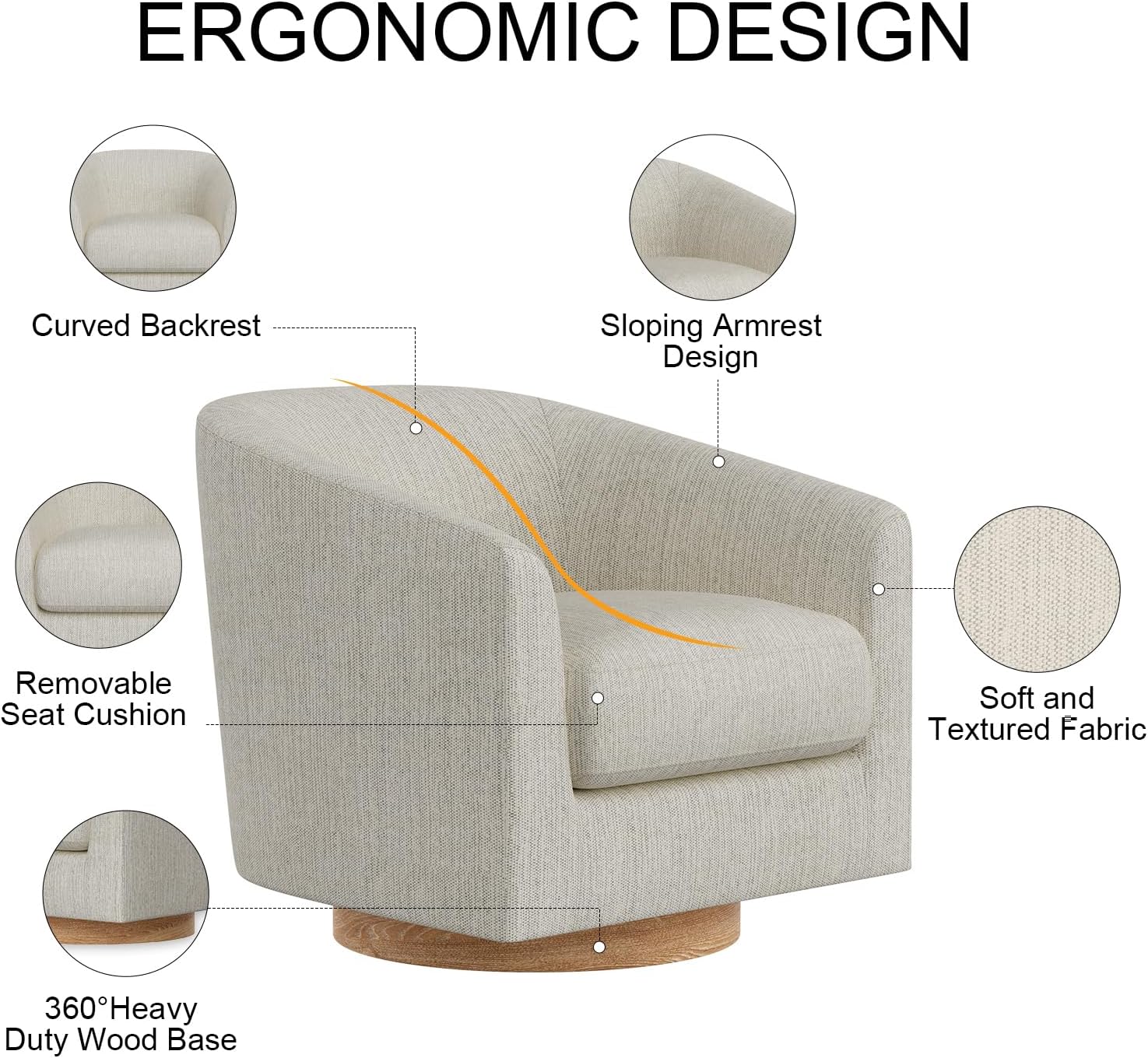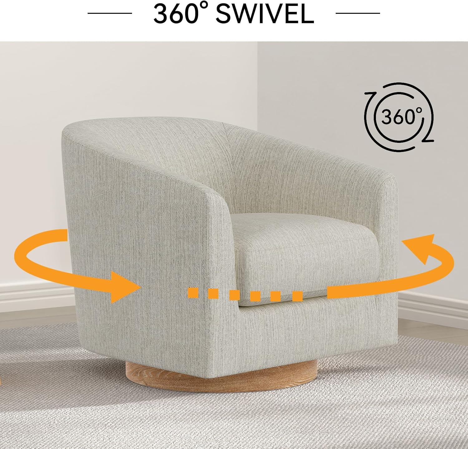 Swivel Accent Chair, Barrel Chair for Living Room, Comfy Single Sofa Chair, Round Swivel Couch Chair, Small Reading Chair for Adults, Ivory White Sherpa Accent Bucket Chairs for Bedroom