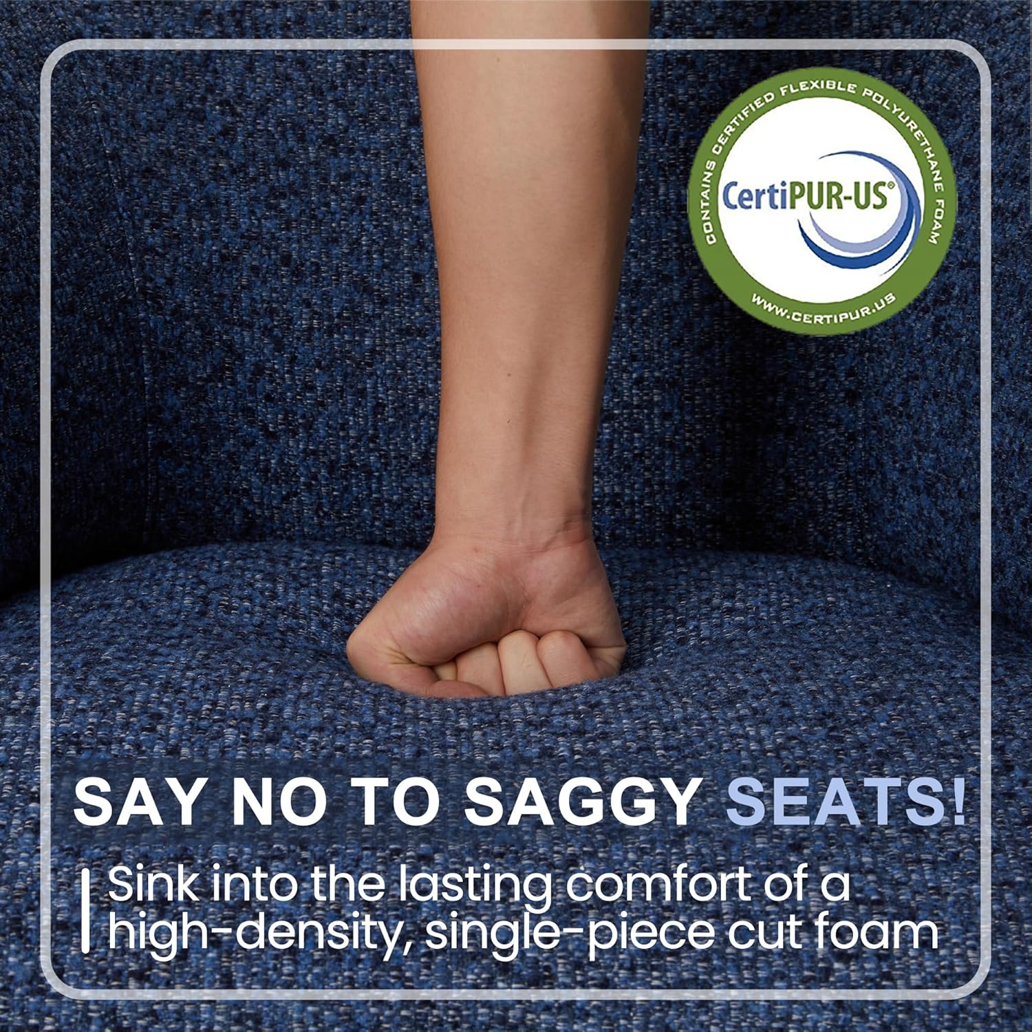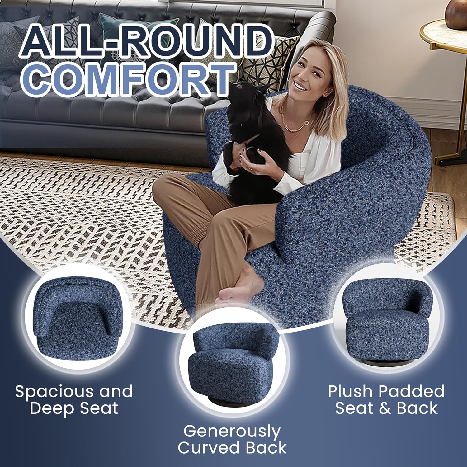 Swivel Accent Chair, Fully Assembled Round Barrel Chairs, Oversized Upholstered Armchair with 360-Degree Base, Modern Club Chair for Living Room, Bedroom, Office, Blue