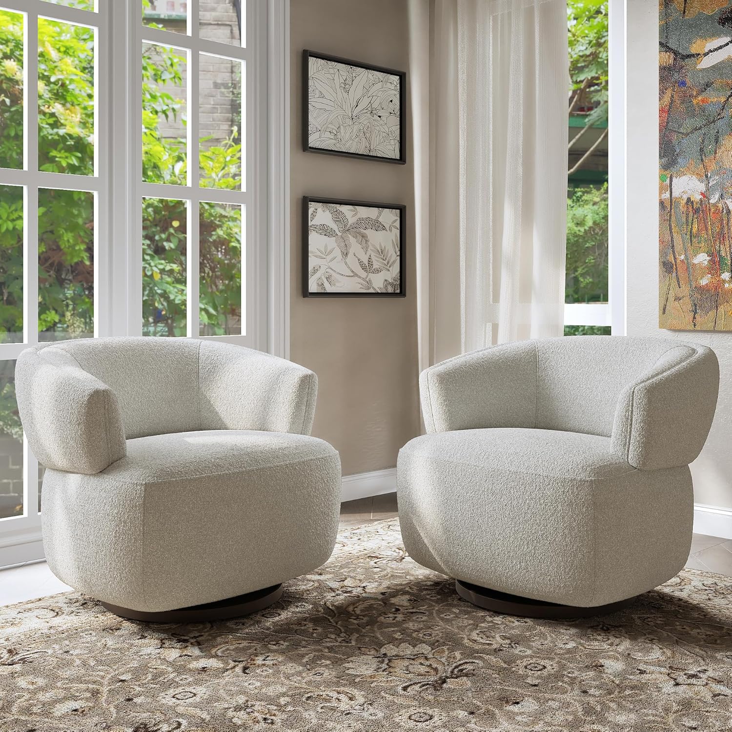 Introducing the swivel barrel chair - a seamless blend of comfort and contemporary design. Crafted with a generously proportioned seat made from a single piece of high-density foam, the accent chair offers enduring comfort and support. Along with an embracing backrest and curved armrests, this lounge sofa chair is the epitome of relaxation. The 360-degree swivel function, facilitated by a robust metal base, enhances both convenience and social interaction. Upholstered in a textured fabric that withstands the test of time, its modern aesthetic is timeless. Crafted with a foundation of wood and supported by springs and straps, this club chair guarantees both strength and longevity. Effortless maintenance comes as standard, and the single sofa chair's fully assembled delivery ensures immediate enjoyment. Experience relaxation and style united in the reading chair.