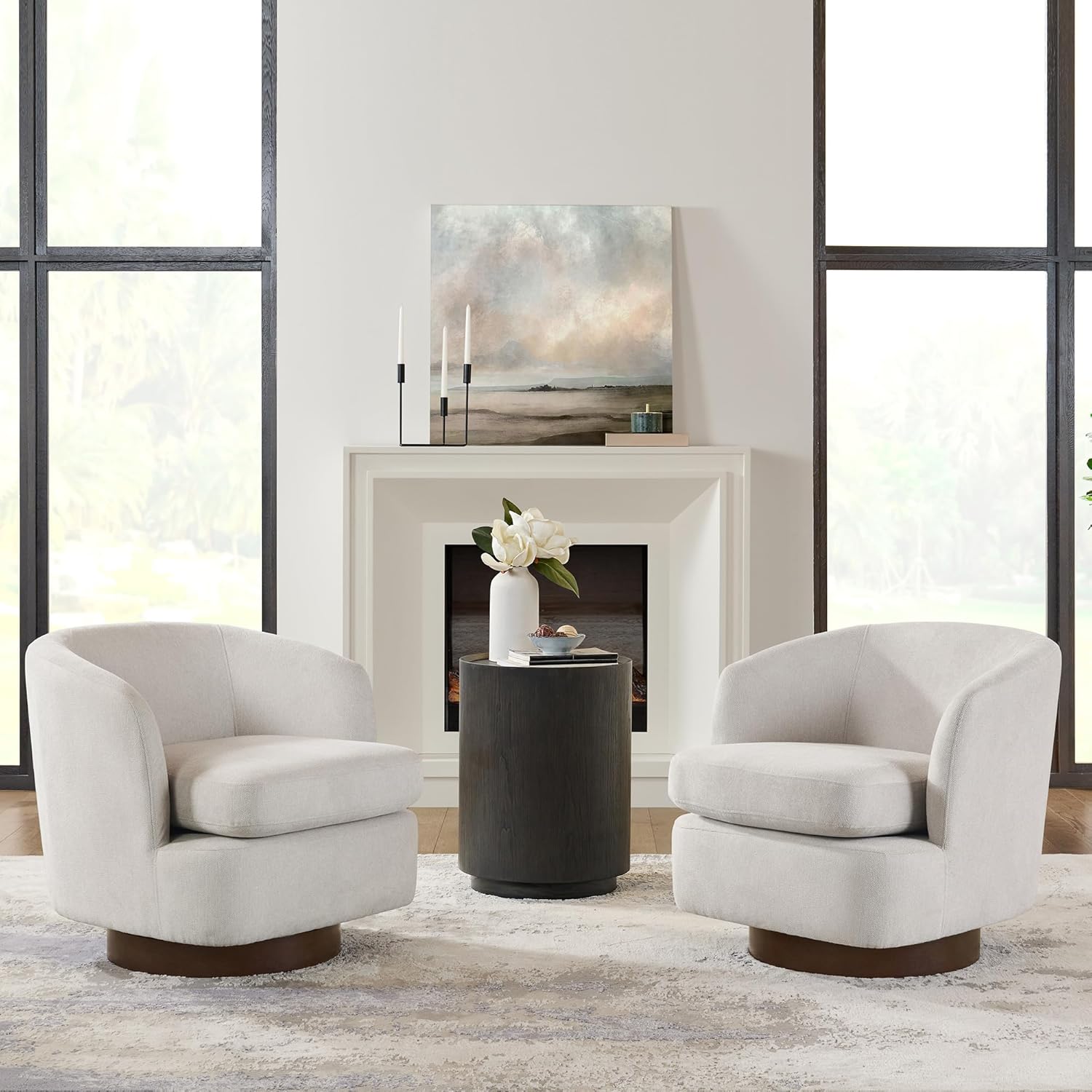 Whether you need a spot to curl up with a good book or somewhere to lay out clothes for the next day, this streamlined swivel chair boasting a barrel silhouette is a versatile addition to your space. This swivel chair boasting a barrel silhouette and features an on-trend solid hue that’s bound to blend in with your color scheme. It's the perfect pick for the living room, office room, and bedroom.