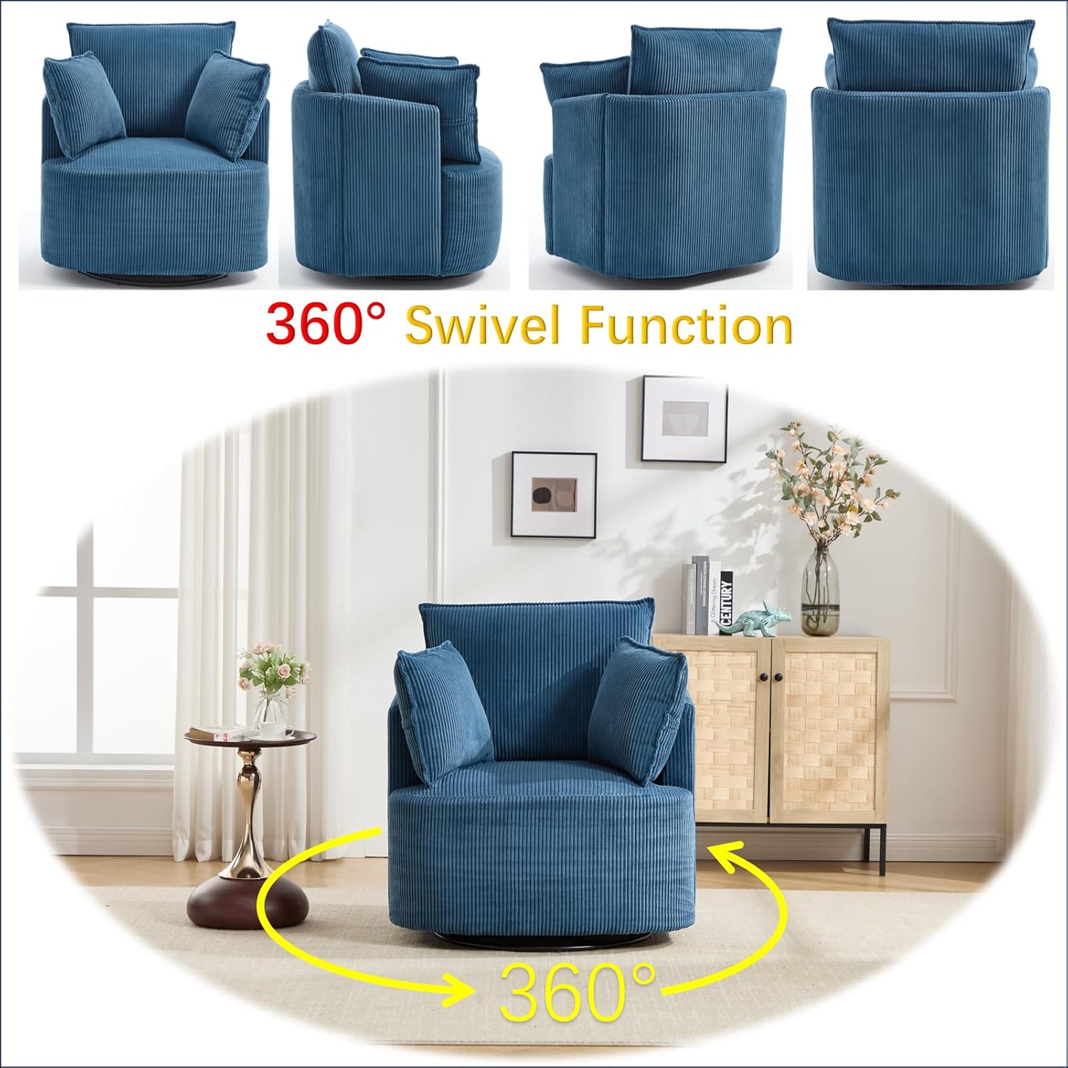 Swivel Accent Chair – Round Swivel Chair for Living Room, Corduroy Barrel Sofa Chair, 360° Rotating Lounge Chair, Easy Assembly(Blue)