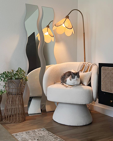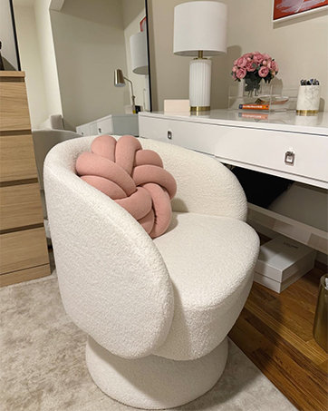 This 360-degree living room chair is designed with a timeless look, making it a perfect choice for any corner of your living room, lounge, reading room, bedroom, office or small space.