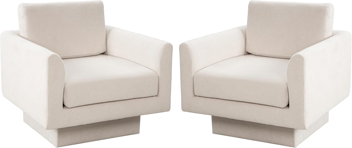 Swivel Accent Chair Set of 2, Modern Swivel Barrel Chair Sofa, Wide Upholstered Armchair with Back Pillow for Living Room, Reading Nook, Bedroom-Cream