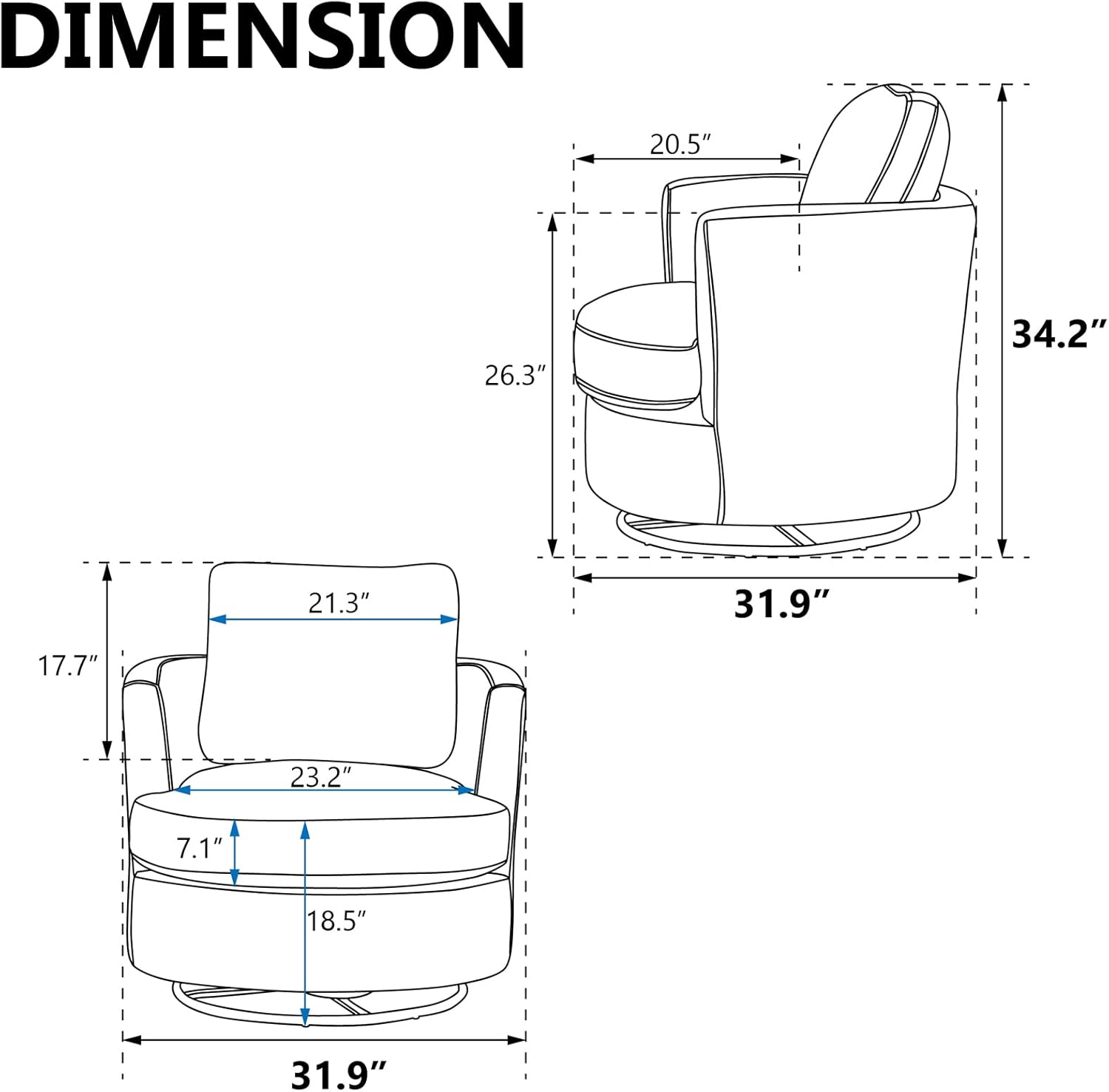Swivel Accent Chair Set of 2,Teddy Sherpa Round Swivel Barrel Chairs for Living Room Upholstered Modern 360 Degree Swivel Club Chair Comfy Armchair for Nursery Bedroom Office(Dark Blue)