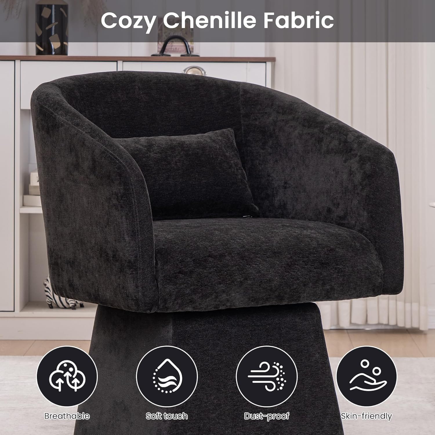 Swivel Accent Chairs Set of 2, Upholstered Barrel Chair with a Soft Backrest, 360 Degree Swivel Armchair, Reading Corner Chairs for Living Room, Bedroom, Waiting Room, Club, Adults, Black