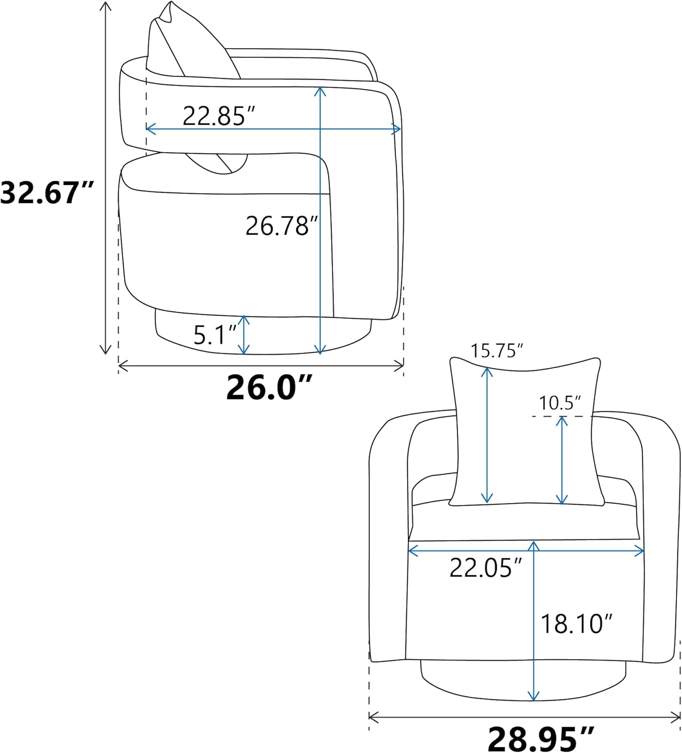 Swivel Barrel Chair Set of 2, Modern Teddy Round Accent Chairs Curved Open Back, 360 Degree Swivel Arm Chair with Pillow, Single Sofa Chair for Living Room Bedroom,Orange