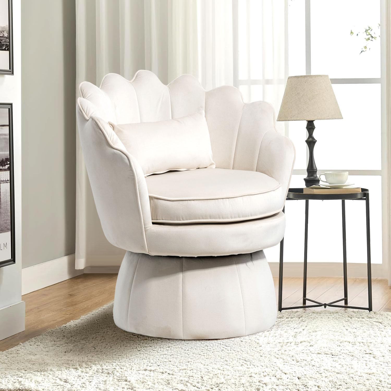 Swivel Barrel Chairs Set of 2, Small Accent Armchair, Navy Blue Velvet Upholstered, Mid-Century Modern Style, for Living Room/Bedroom/Waiting Room, for Relaxing & Reading, Pillow Included