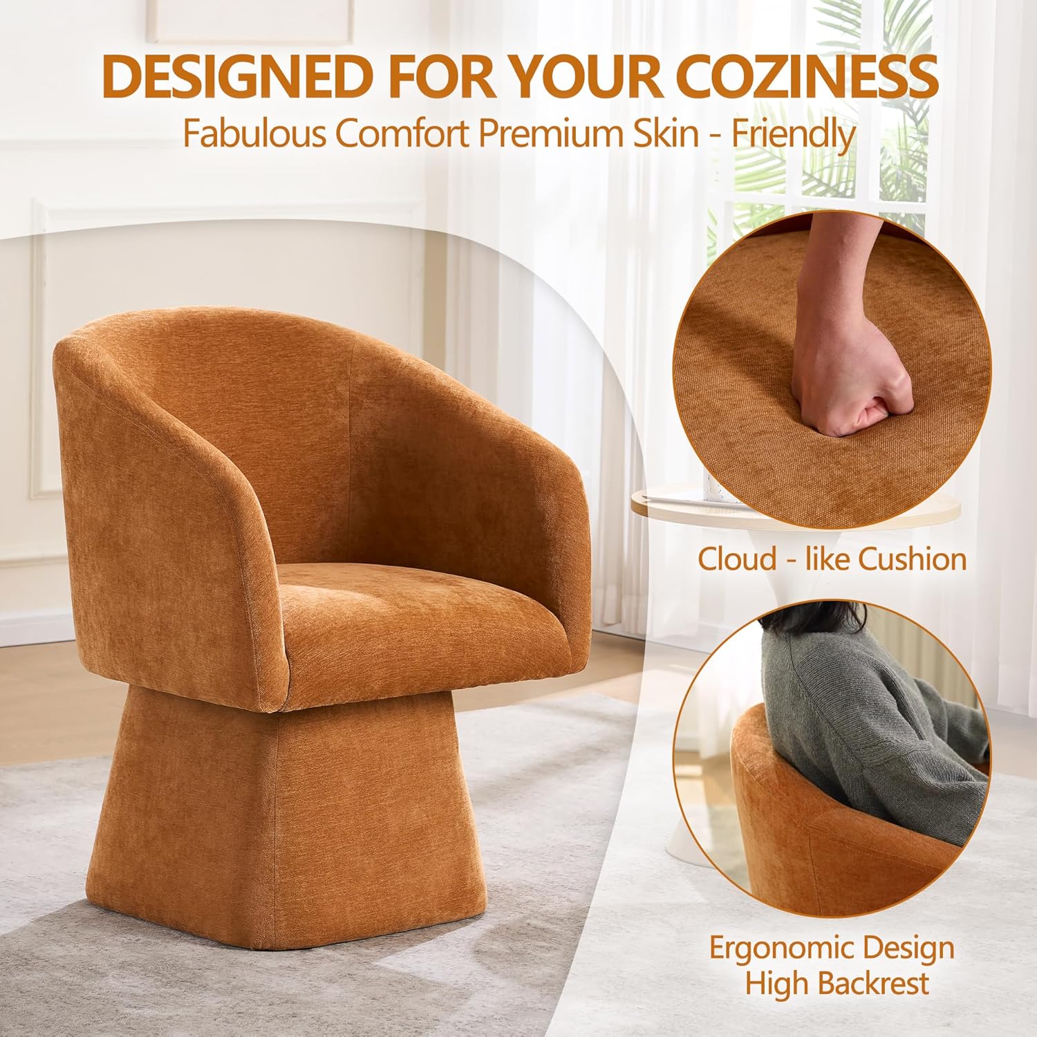 Swivel Modern Accent Chair,Luxury Fabric Upholstered Makeup Chair Comfy Barrel Chair with No Wheels,360°Rotating Vanity Armchair for Living Room Bedroom Office (Orange,Set of 2)