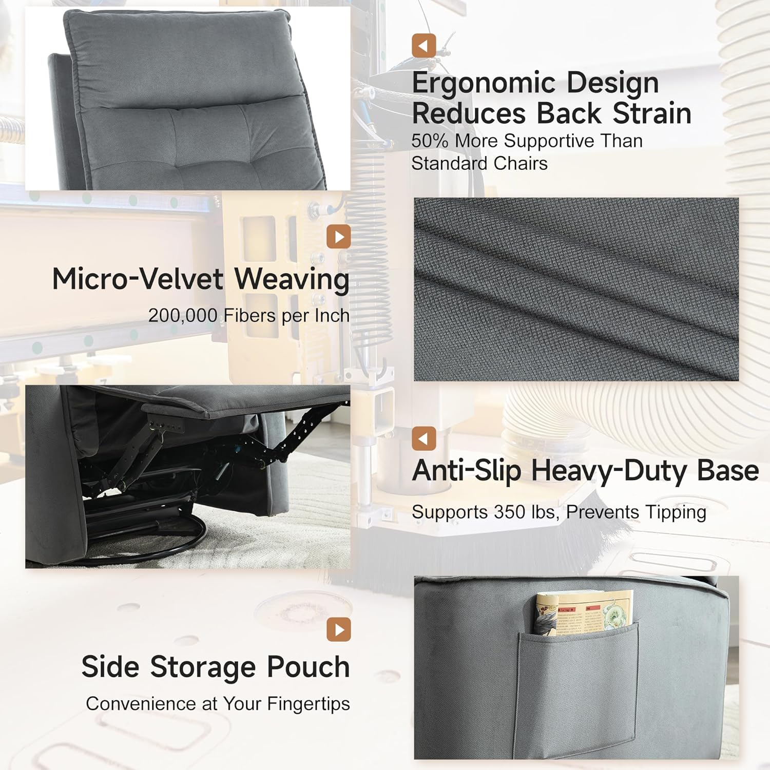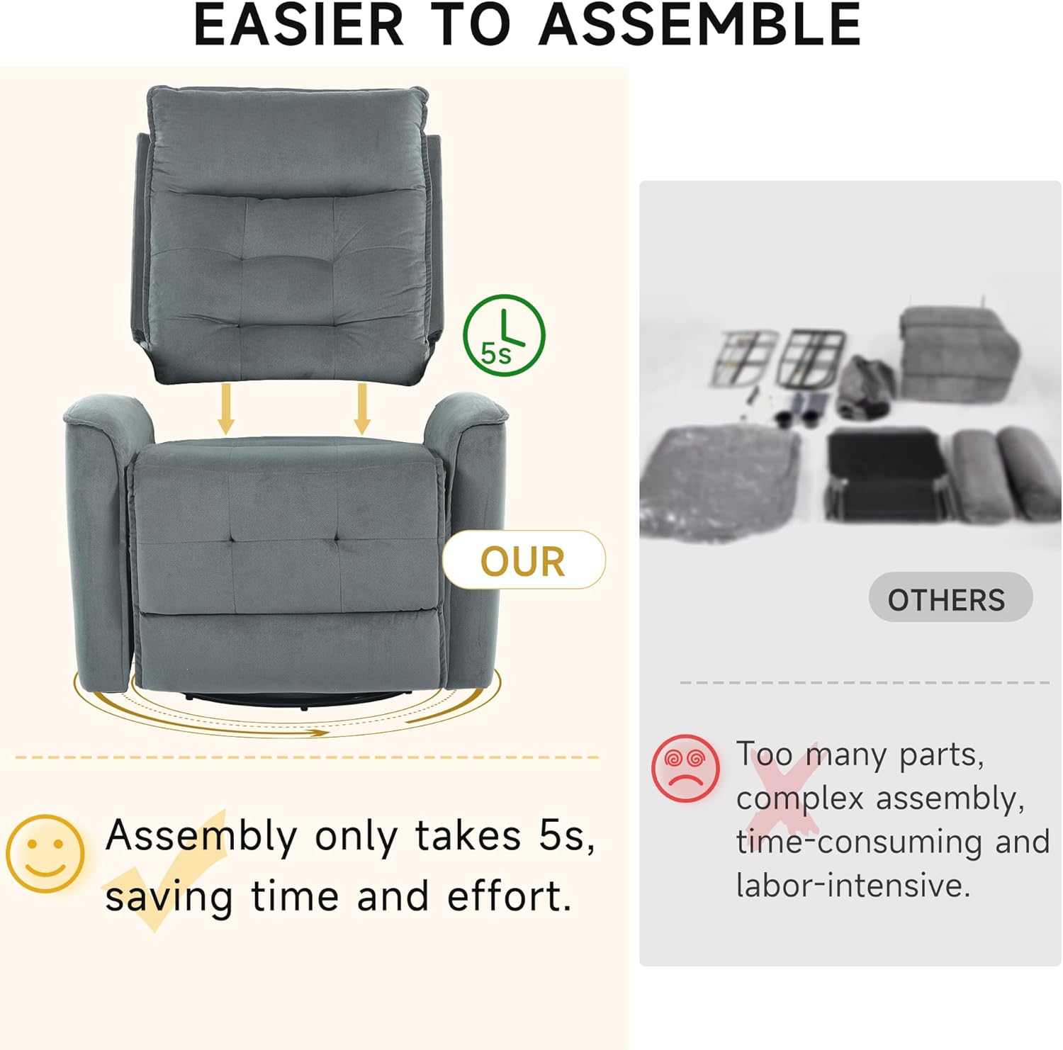 Swivel Rocker Recliner Chair for Adults, Glider Rocking Chair for Nursery, Small Recliner Chair for Small Spaces, RV, Living Room(Grey)